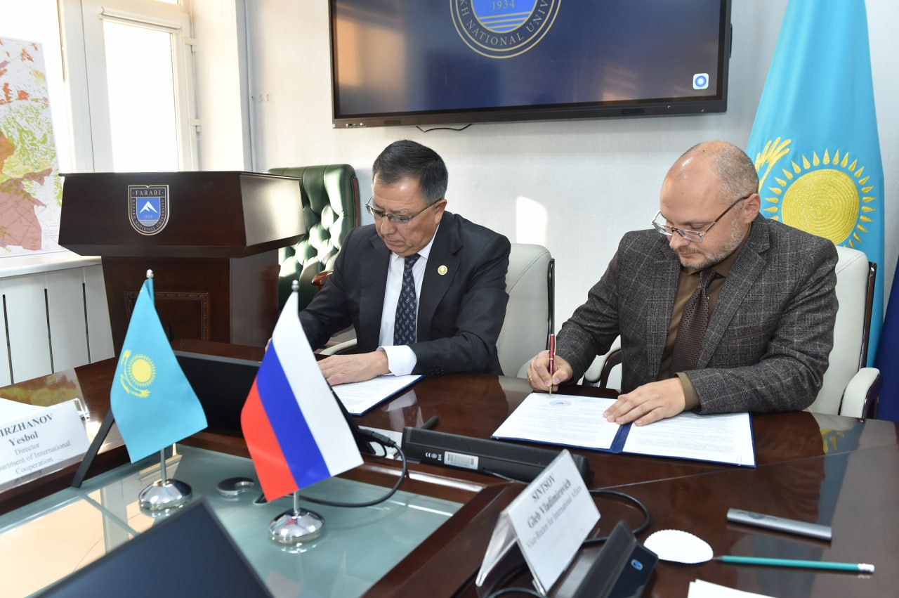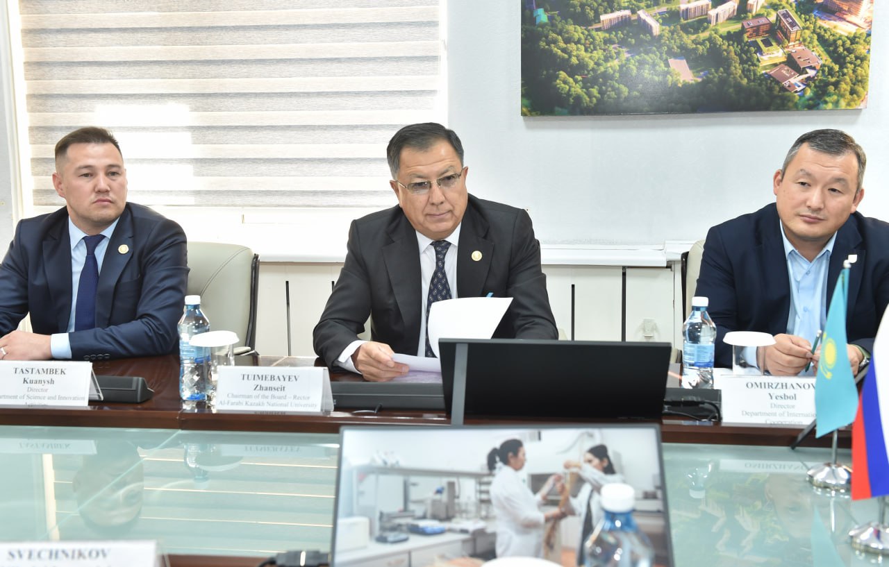 ҚазҰУ ректоры Жансейіт Түймебаев Қазақстан мен Ресей арасындағы экономикалық және ғылыми байланыстардың жоғары қарқынмен дамып келе жатқанын атап өтті. Сондай-ақ ол екі ел арасындағы серіктестік тек мемлекеттік деңгейде ғана емес, білім және ғылым саласында да жаңа сапалы кезеңге шыққанын айтып, жоғары оқу орындары, компаниялар мен ғылыми құрылымдар арасындағы өзара іс-қимылдың жүйелілігі мен ұзақ мерзімділігінің маңыздылығына тоқталды. «Қазіргі уақытта ҚазҰУ 180 ресейлік жоғары оқу орны және ұйымдармен серіктестік байланыс орнатқан. Бұл студенттер мен оқытушылар алмасуын, сондай-ақ бірлескен ғылыми жобаларды іске асыруға кең мүмкіндік береді», – деді ректор.