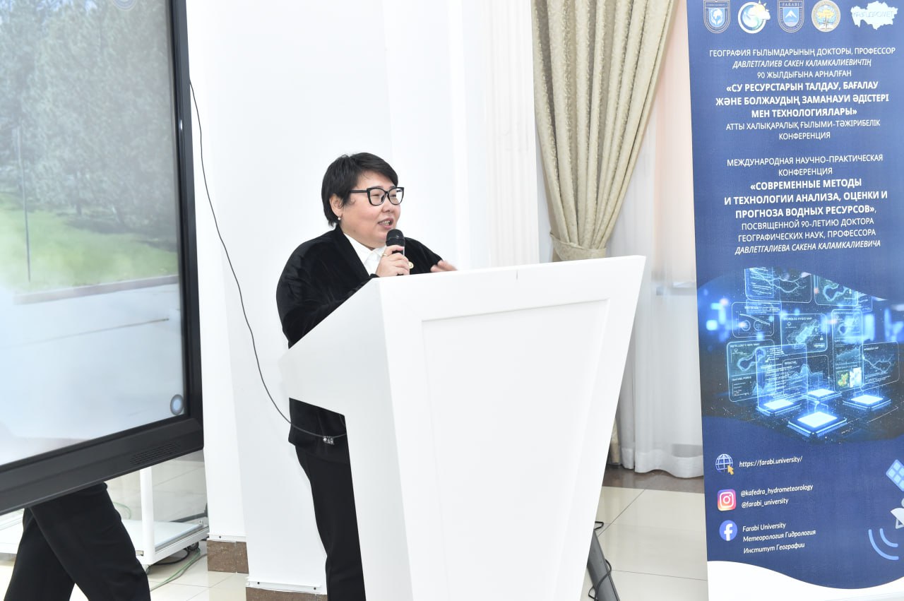 Пленарлық отырыс барысында География және табиғатты пайдалану факультетінің деканы Әлия Ақтымбаева сөз сөйлеп, конференцияның профессор Сәкен Қаламқалиұлы Дәулетғалиевтің 90 жылдық мерейтойына арналуымен ерекшеленетінін атап өтті. Ол көрнекті ғалымның су ресурстарын тиімді басқару мен географиялық ғылымдарды дамытуға қосқан зор үлесін, сондай-ақ оның ғылыми мектебінің еліміздің су қауіпсіздігін қамтамасыз ету саласында еңбек етіп жүрген бірнеше буынды біріктіретінін айтты.