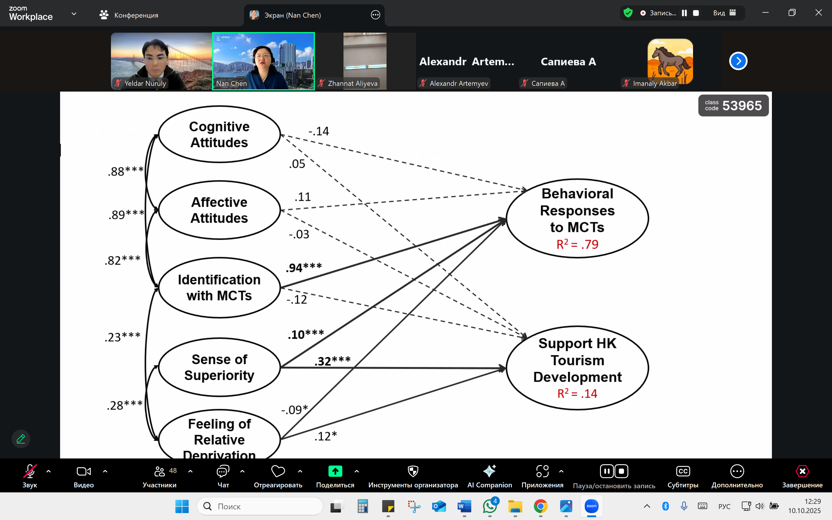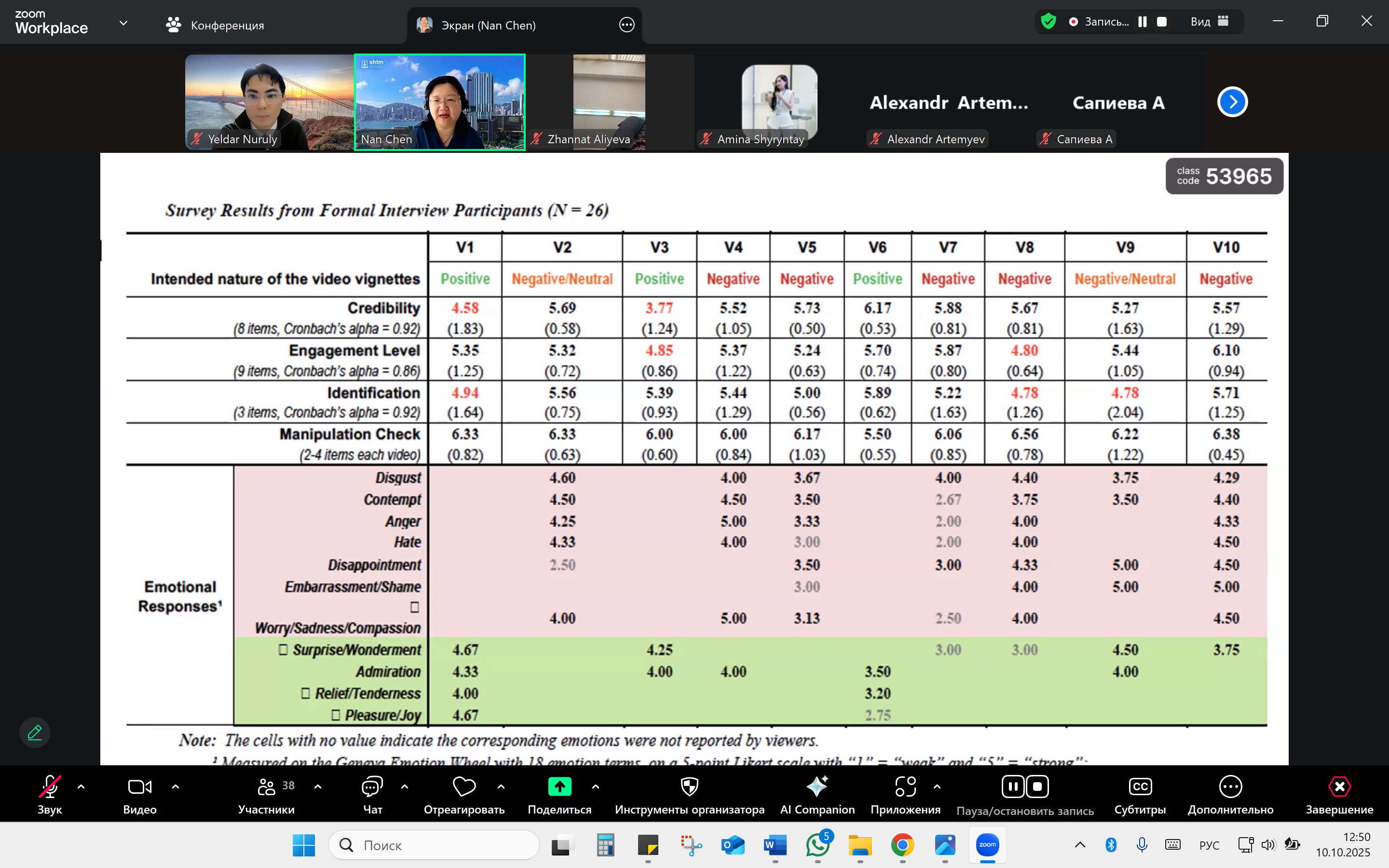 Дәріс соңында студенттер туризмдегі эмоциялық талдау әдістері мен бейне-виньеткаларды кросс-мәдени зерттеулерде қолдану жөнінде мазмұнды сұрақтар қойды. Д-р Чен барлық сұрақтарға нақты әрі терең жауап беріп, зерттеу жүргізудің тәжірибелік қырларымен бөлісті.