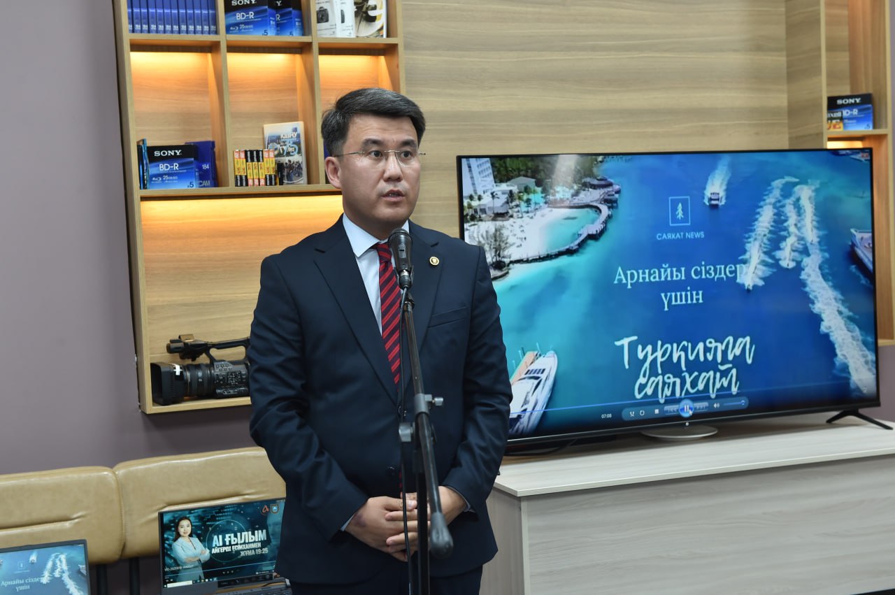 С приветственным словом выступил член Правления КазНУ –исполняющий обязанности проректора по социальному развитию Бахытжан Омаров. Он отметил, что открытие обновленной телестудии символизирует поступательное развитие университета и внедрение инновационных подходов в образовательный процесс. «Новая студия – это не просто техническая база, а творческое пространство, где рождаются современные медиаформаты, идеи и профессиональные кадры. Здесь студенты смогут реализовывать собственные проекты, получать практический опыт телевизионной работы и ощущать себя частью большой медиасферы», – подчеркнул Бахытжан Омаров.