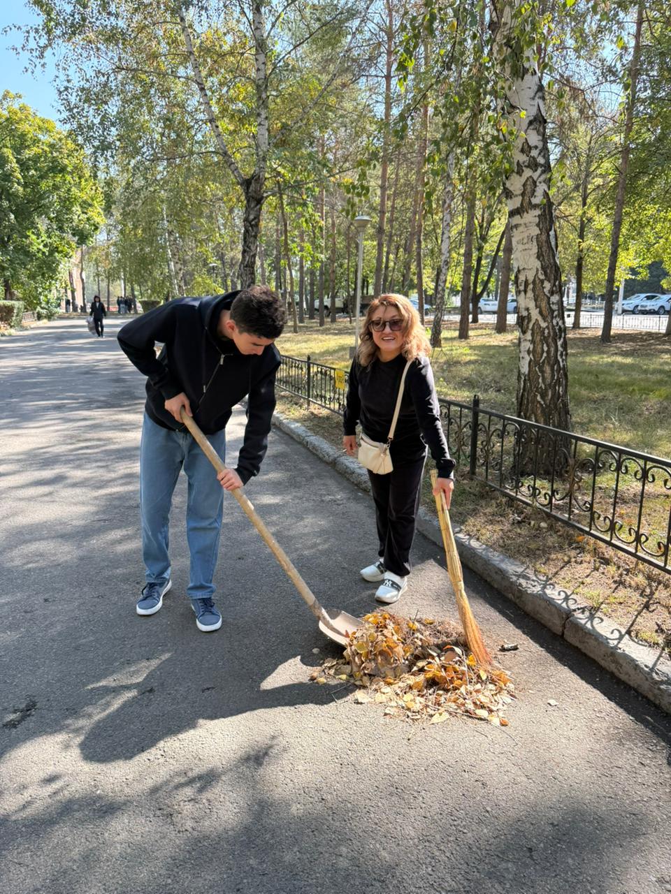 In accordance with the goals of SDGs 11, "Sustainable cities and human settlements" and 15, "Conservation of terrestrial ecosystems", on September 20, 2025, 1st-year students of the specialties "6B04103-Economics" and "6B0409-Digital Economy" of the Higher School of Economics and Business of the Al-Farabi Kazakh National University within the framework of The city clean-up day dedicated to the "City Day" was attended by the cleaning of the university's territories and thus contributed to the improvement of the environment and the development of the city.