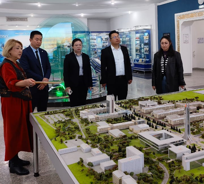 Қытайдың Халықаралық бизнес орталығының жетекшісі, ҚХР Синьцзян құрылыс-шаруашылық корпусының 12 бөлімшесі партия комитетінің мүшесі Ань Тяньцзэ мырза мен ҚХР білім және мамандар дайындау оқу орнының директоры Чжан Лу мырза университет тарихымен танысты. Ұйымдастырушылар университеттің Біліктілікті арттыру институтының (БАИ) мамандары