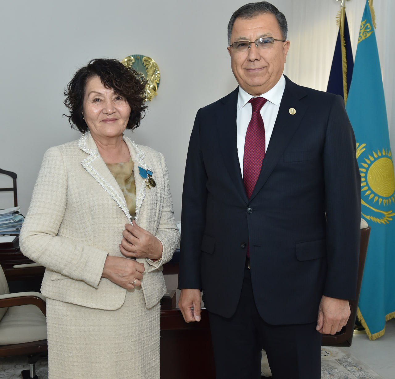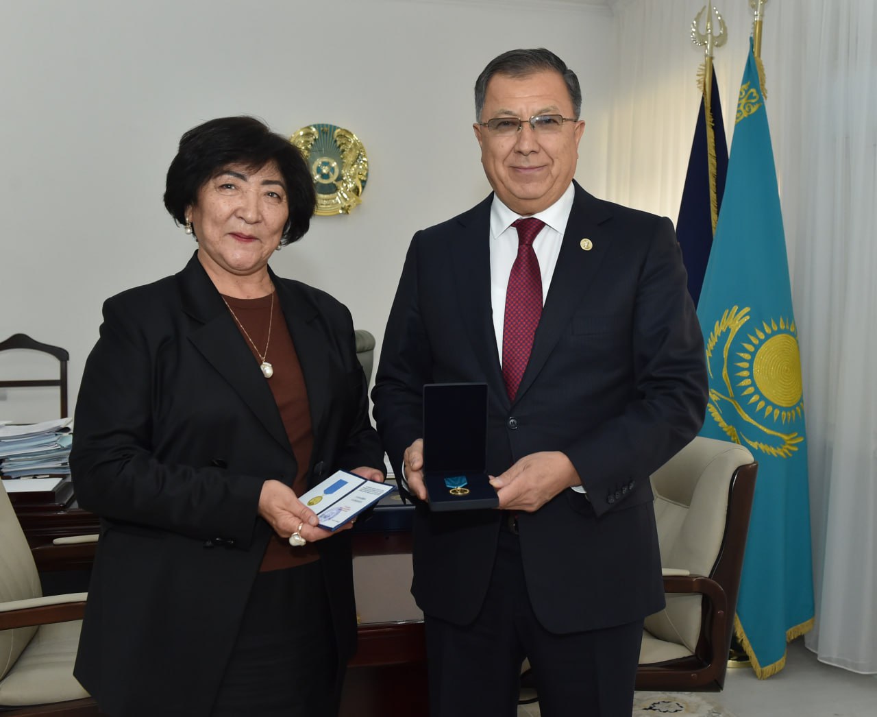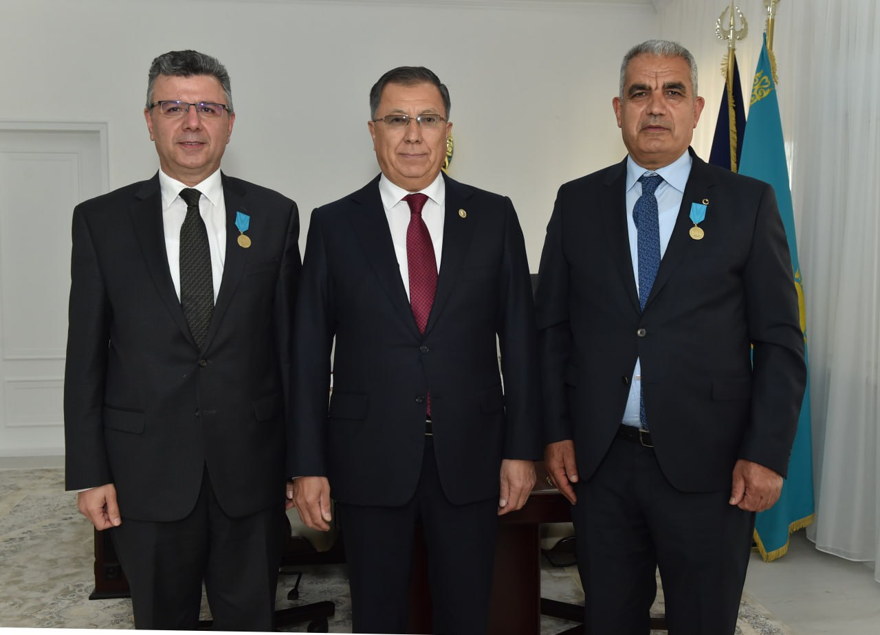 Во время встречи руководитель учебного заведения Жансеит Туймебаев наградил ученых тюркологов медалью «Farabi».