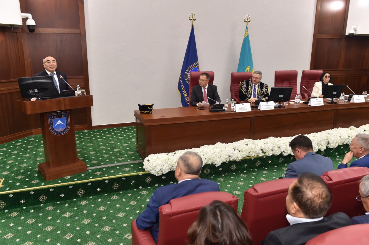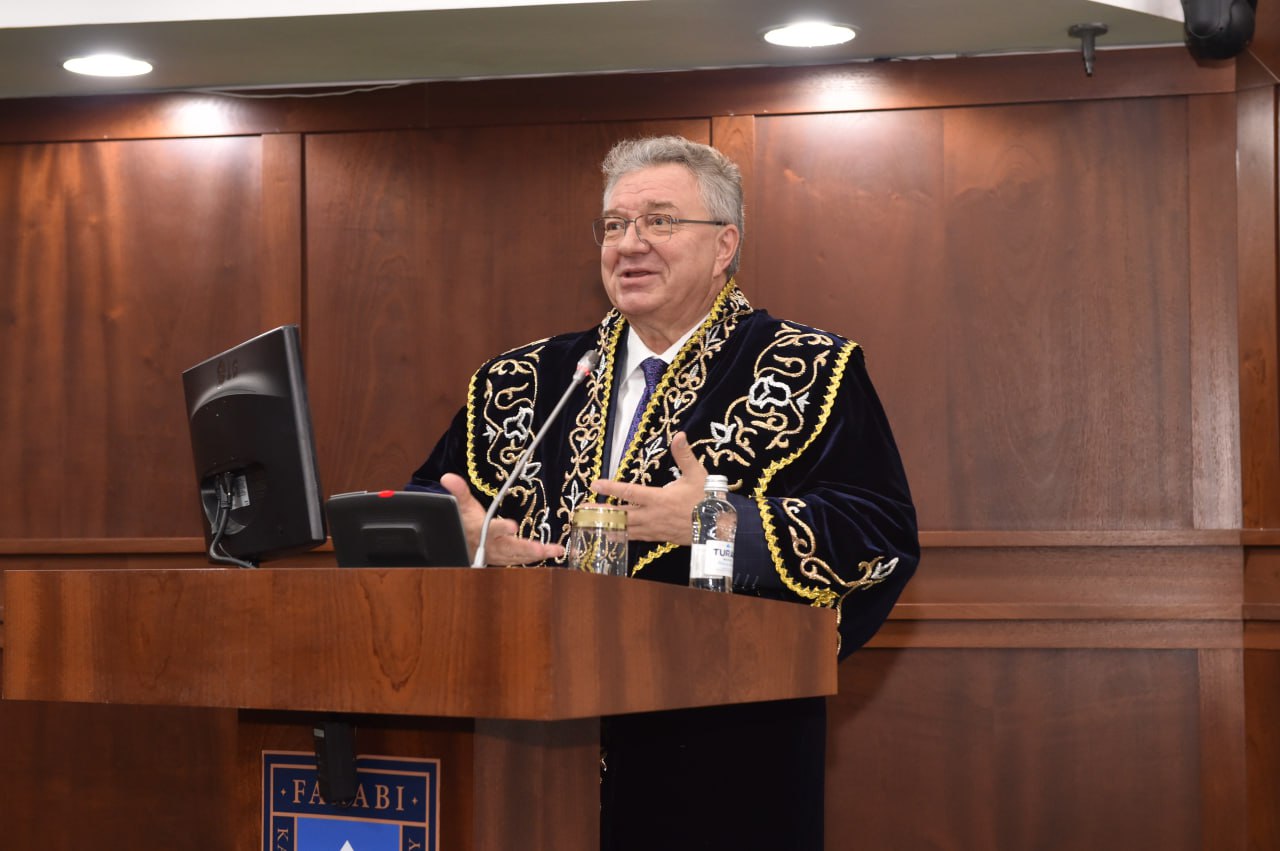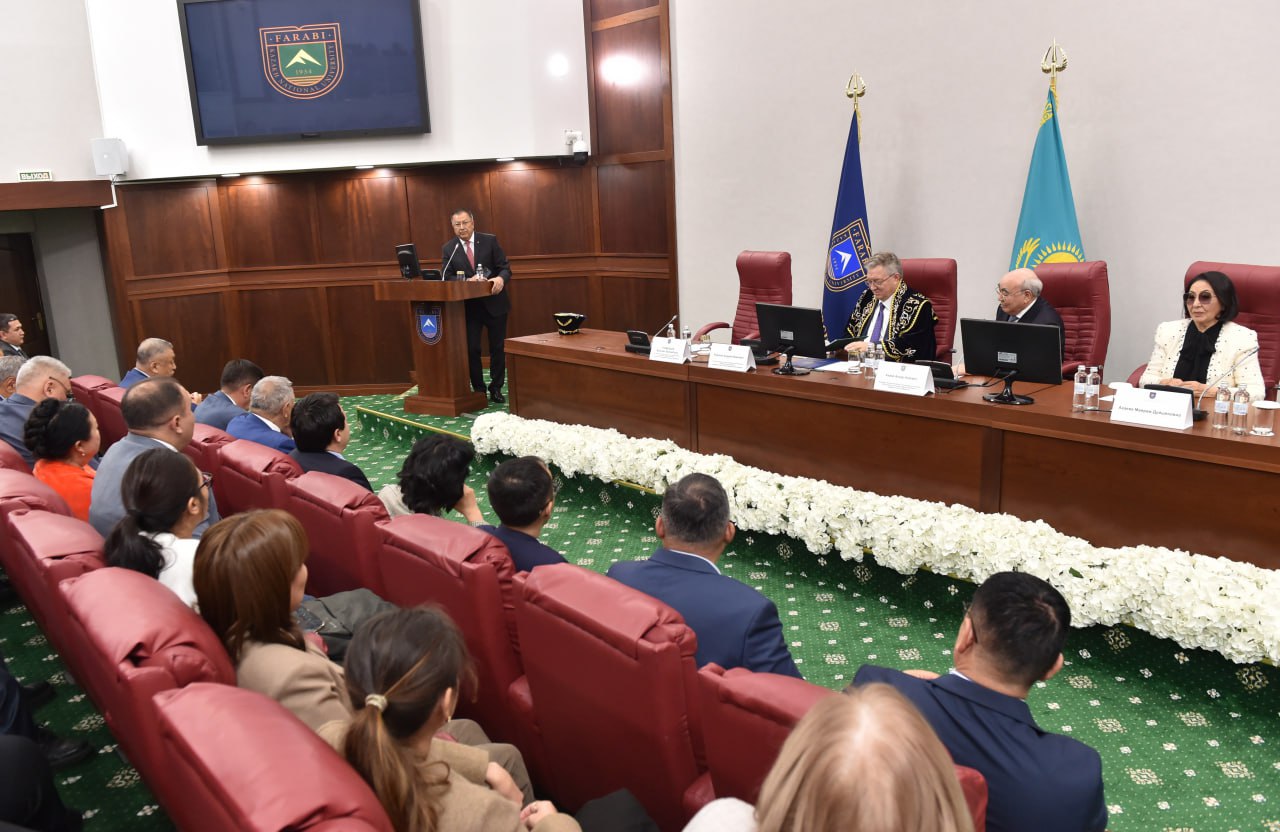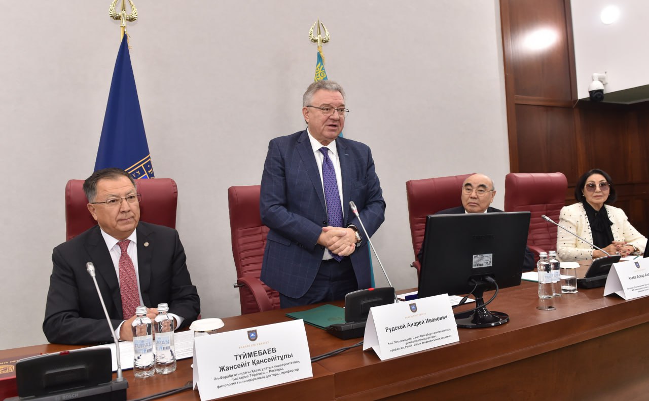 Сөз соңында Жансейіт Түймебаев Ғылыми кеңес шешімімен Андрей Рудскойға «ҚазҰУ-дың Құрметті профессоры» атағын салтанатты түрде табыстады.