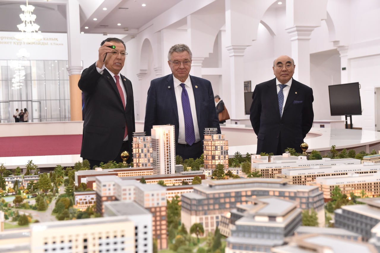 Әл-Фараби атындағы Қазақ ұлттық университетіне Ұлы Петр атындағы Санкт-Петербург политехникалық университетінің ректоры, РҒА вице-президенті Андрей Рудской мен Қырғыз Республикасының Тұңғыш Президенті, Ресей ғылым академиясының академигі, профессор Асқар Ақаев жұмыс сапармен келді.