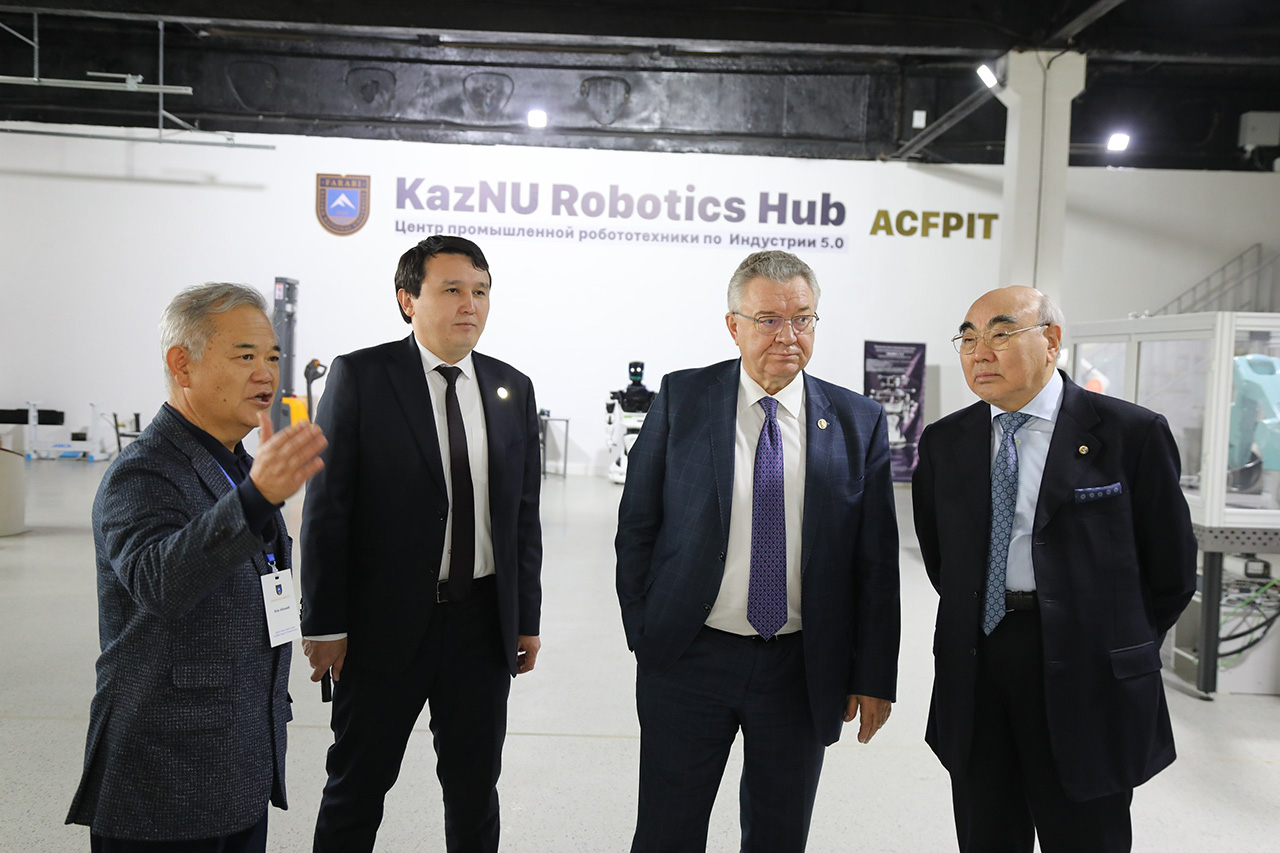 Кейін Андрей Рудской мен Асқар Ақаев Робототехника және роботтандыру бойынша инженерлік компетенция орталығын аралап көрді. Мұнда Германиядағы KUKA компаниясының роботтары қойылған. Аталған ғылыми орталық болашақта ғылым, білім және отандық өнеркәсіпті біріктіре отырып, Қазақстан өнеркәсібі үшін білікті кадрларды даярлау орнына айналады. Сонымен қатар құрметті меймандар «Цифрлық технологиялар және робототехника» халықаралық институты мен Робототехника орталығының жұмысымен танысты. Қытайлық компаниямен бірлесіп ашылған шеберхана білім алушы жастарға цифрлық инженерия мен өнеркәсіптік робототехниканы меңгеруге мүмкіндік береді. Мұнда студенттер өндірістің барлық процестерін сандық ортада үйренеді. Сонымен қатар өндірістегі әр кезеңді өзара байланыстыруды үйреніп, күрделі автоматтандырылған жүйелермен жұмыс істеуге дағдыланады.