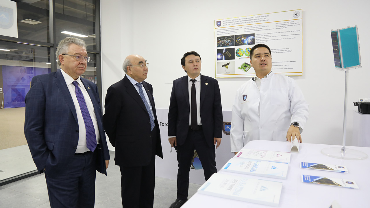 Университетке жұмыс сапары барысында Андрей Рудской мен Асқар Ақаевқа ҚазҰУ зерттеушілері әзірлеген «Al-Farabi 2» наноспутнигі көрсетілді. Әл-Фараби атындағы ҚазҰУ – отандық жоғары оқу орындары арасында өзінің наноспутнигін іске асырған алғашқы оқу орны. Құрметті қонақтарға Қытайдың Солтүстік-батыс политехникалық университетімен бірлесіп дайындалып жатқан микроспутниктің макеті көрсетілді. Ортақ жұмыс нәтижесінде қос жоғары оқу орны 2026 жылы ғарышқа микроспутник ұшыруды көздеп отыр.