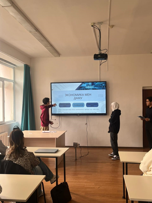 Іс-шараны куратор-эдвайзерлер Ахметова Г.А. және Жүнісжан А.Ж. ұйымдастырды. Сабақ барысында студенттер мазмұнды презентациялар көрсетіп, танымдық ойындар ойнады, бейнероликтер ұсынды және көрермендермен белсенді пікір алмасты.