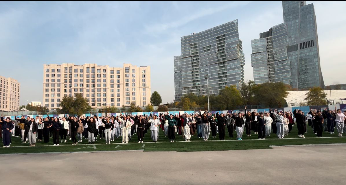 Студенты Казахского национального университета имени аль-Фараби организовали флешмоб «Здоровая молодежь – будущее страны» в рамках общенациональной акции «Менің Қазақстаным!», посвященной 25 октября – Дню Республики и 35-летию принятия Декларации о государственном суверенитете Республики Казахстан.