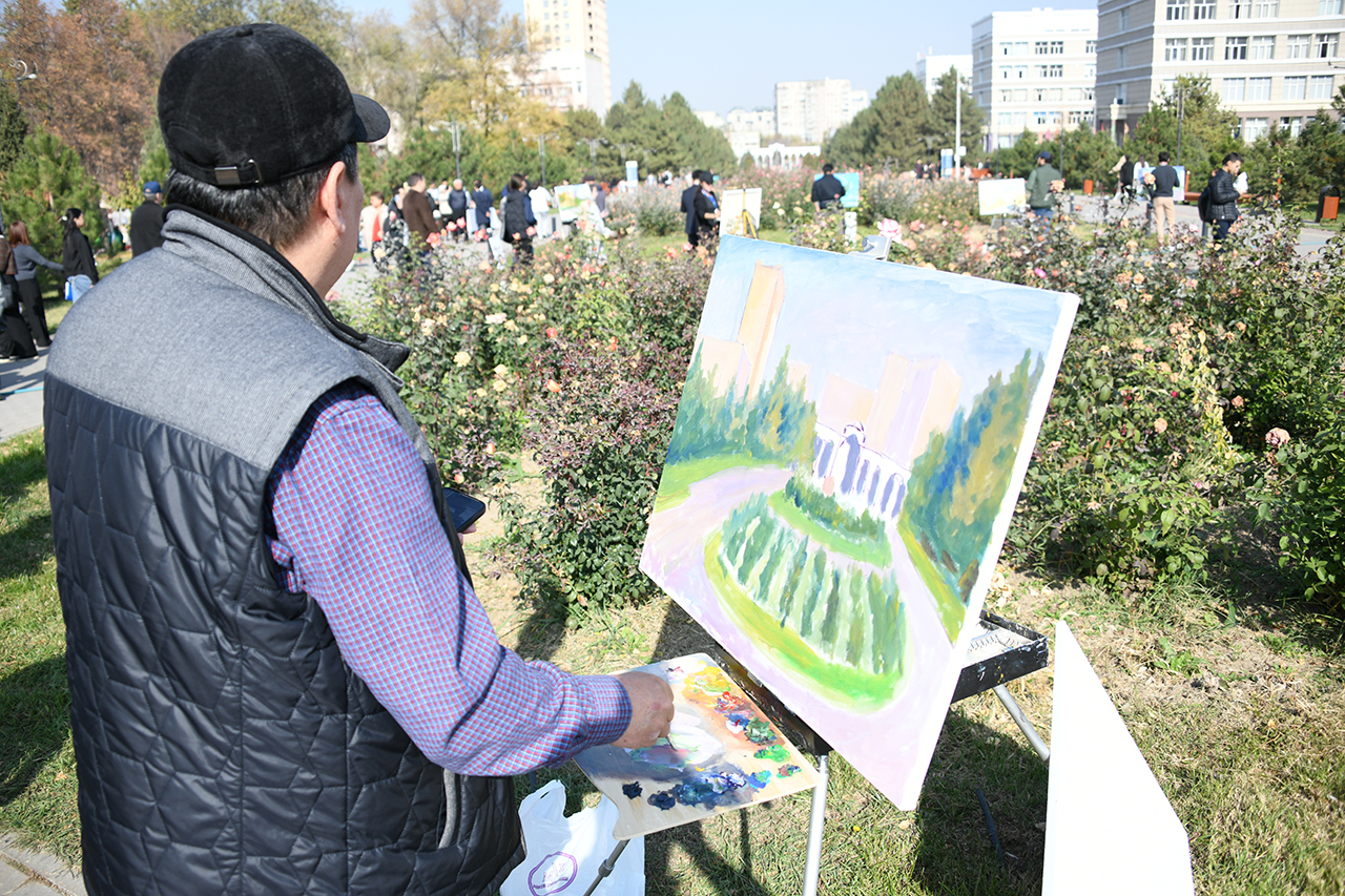«Бүгінгі суретшілерге берілген негізгі тақырып – ҚазҰУ қалашығының әсемдігін көрсету. Пленэрге қатысушы суретшілердің ішінде «Дарын» сыйлығының иегерлері, халықаралық және республикалық байқаулардың жеңімпаздары бар. Пленэр соңында майлы бояумен салынған 30 туындыны университетке сыйға тартатын боламыз», – дейді ҚР Суретшілер одағының мүшесі, суретші Тоққожа Қожағұлов.