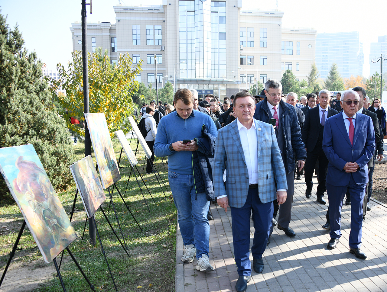Пленэр жұмысымен Әл-Фараби атындағы ҚазҰУ-дың Басқарма Төрағасы – Ректор Жансейіт Түймебаев танысып, шығармашылық тұлғаларға сәттілік тіледі. Өз сөзінде ректор мұндай игі шаралар ҚазҰУ-дағы өнерлі жастардың шығармашылық әлеуетін дамытуға үлкен септігін тигізетінін жеткізді.