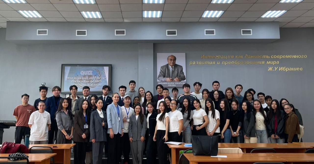 The event opened with welcoming remarks from Mr. Vlastimil Samek, Representative of the United Nations Department of Global Communications in Almaty, and Delovarova Leila Fedorovna, Coordinator of the Academic regional resource center for information support about the UN at the Faculty of International Relations of al-Farabi KazNU. They emphasized the importance of youth involvement in advancing UN principles and achieving the 17 Sustainable Development Goals.