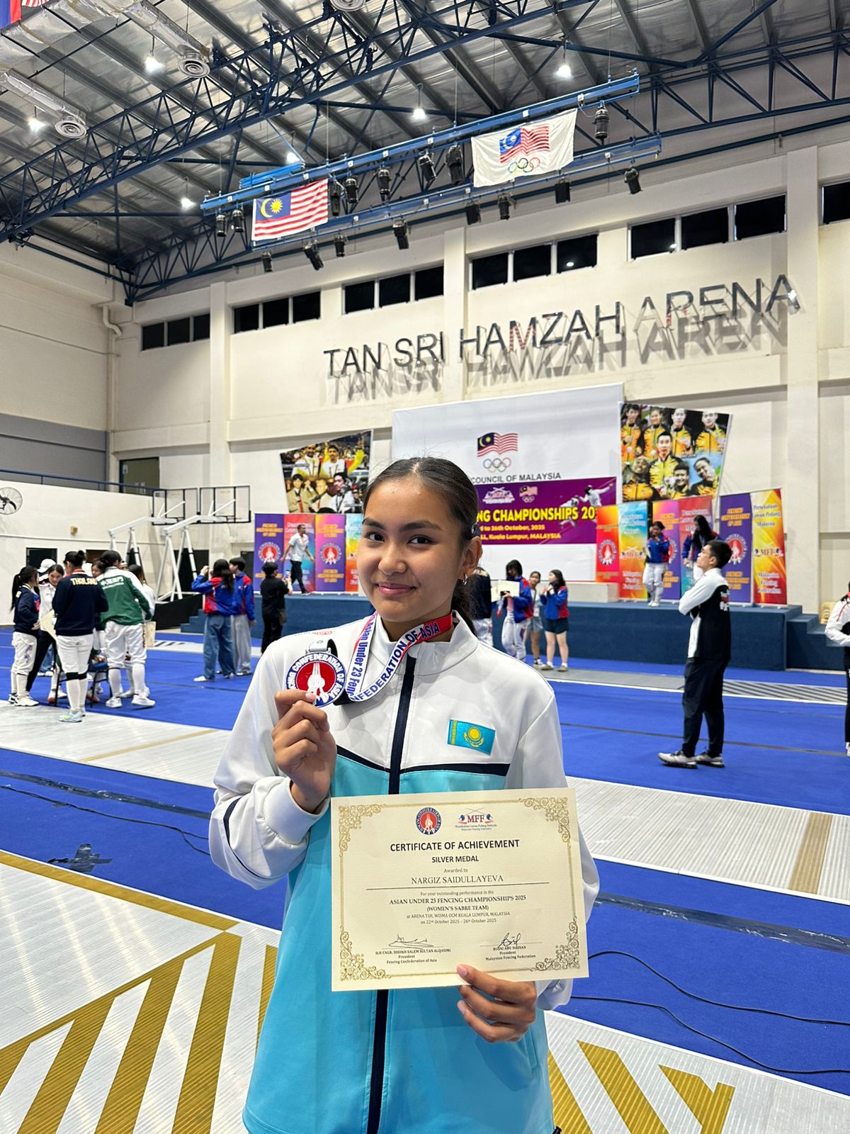 Nargiz Saidullayeva, a student majoring in Marketing at the Higher School of Economics and Business of Al-Farabi Kazakh National University, won 2nd place at the Asian Fencing Championship among athletes under 23, held in Kuala Lumpur, Malaysia! 🥈