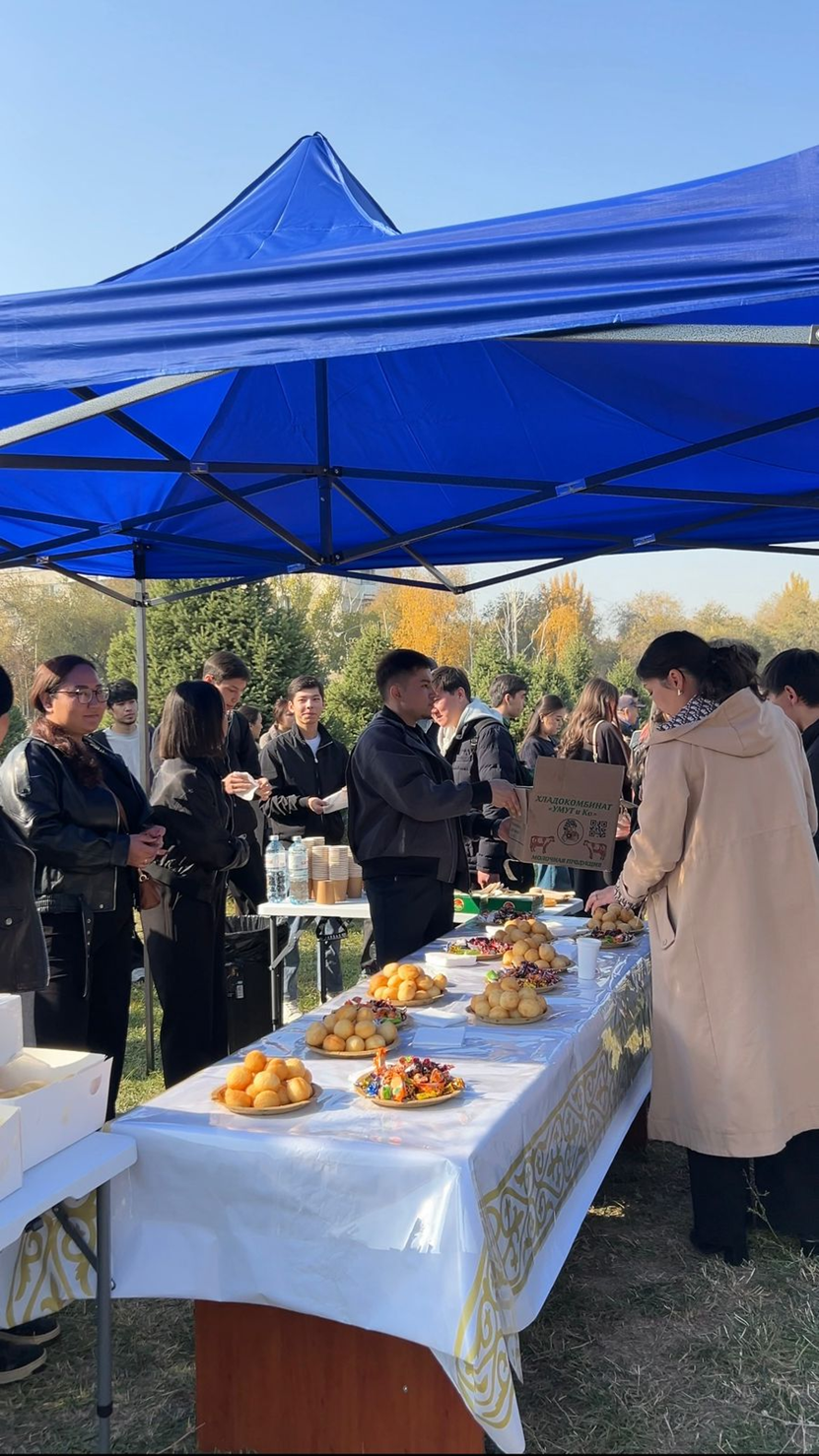 Студенттік қалашық дирекциясы ұйымдастыруымен жастарды ізгілік пен жауапкершілікке баулуды мақсат еткен кезекті шарасын өткізді. «Тұрақты даму мақсаттары – 2: Аштықты жою» бағыты бойынша өткен бұл игі іс-шара қоғамдағы өзара қолдау мен қамқорлықтың маңызын айқындады. Бір күн бойы ұйымдастырылған акция барысында студенттерге тегін тағам үлестіріліп, ортақ дастархан басында бірлік пен мейірімнің қадірі насихатталды. Шара аясында жастар әлемдік «Аштықты жою» бастамасының мәні, азық-түлік қауіпсіздігі және тұрақты даму қағидаттары жөнінде ақпарат алды.
