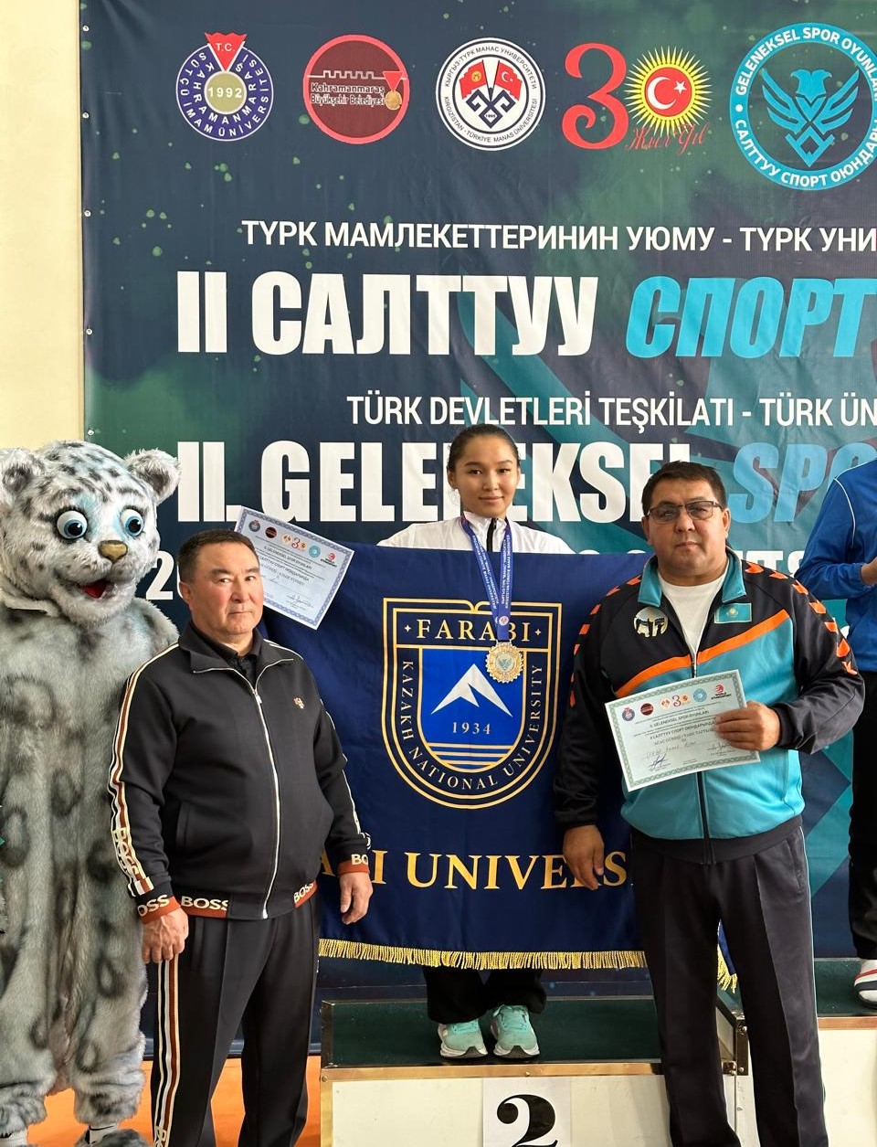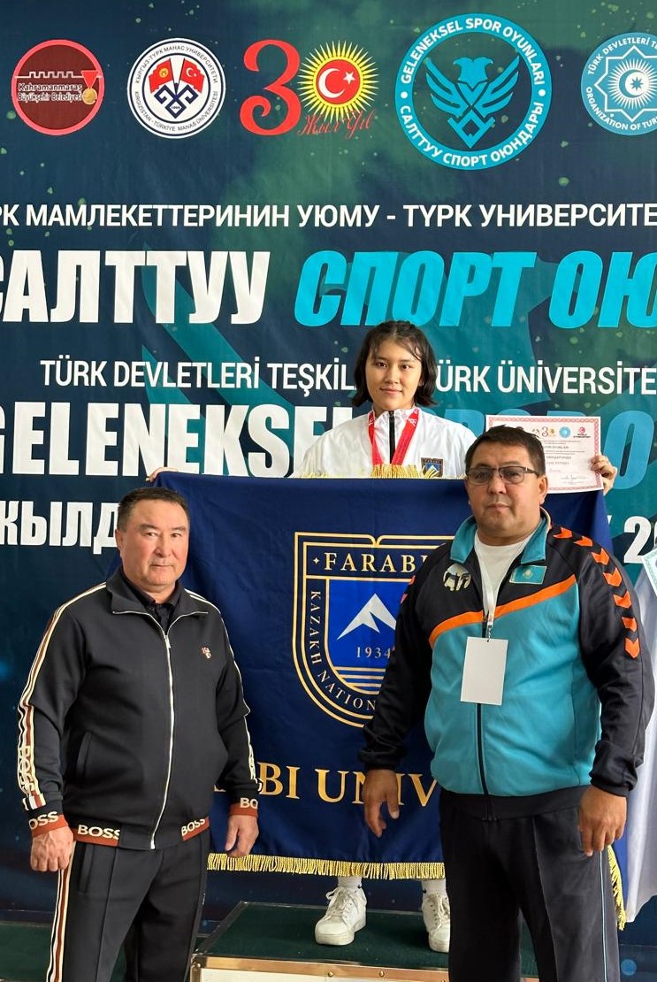 Философия және саясаттану факультетінің 3 курс студенті Тургунбаева Арухан 65 кг салмақ дәрежесінде 1-орынға ие болды, күрес Алыш күрес.