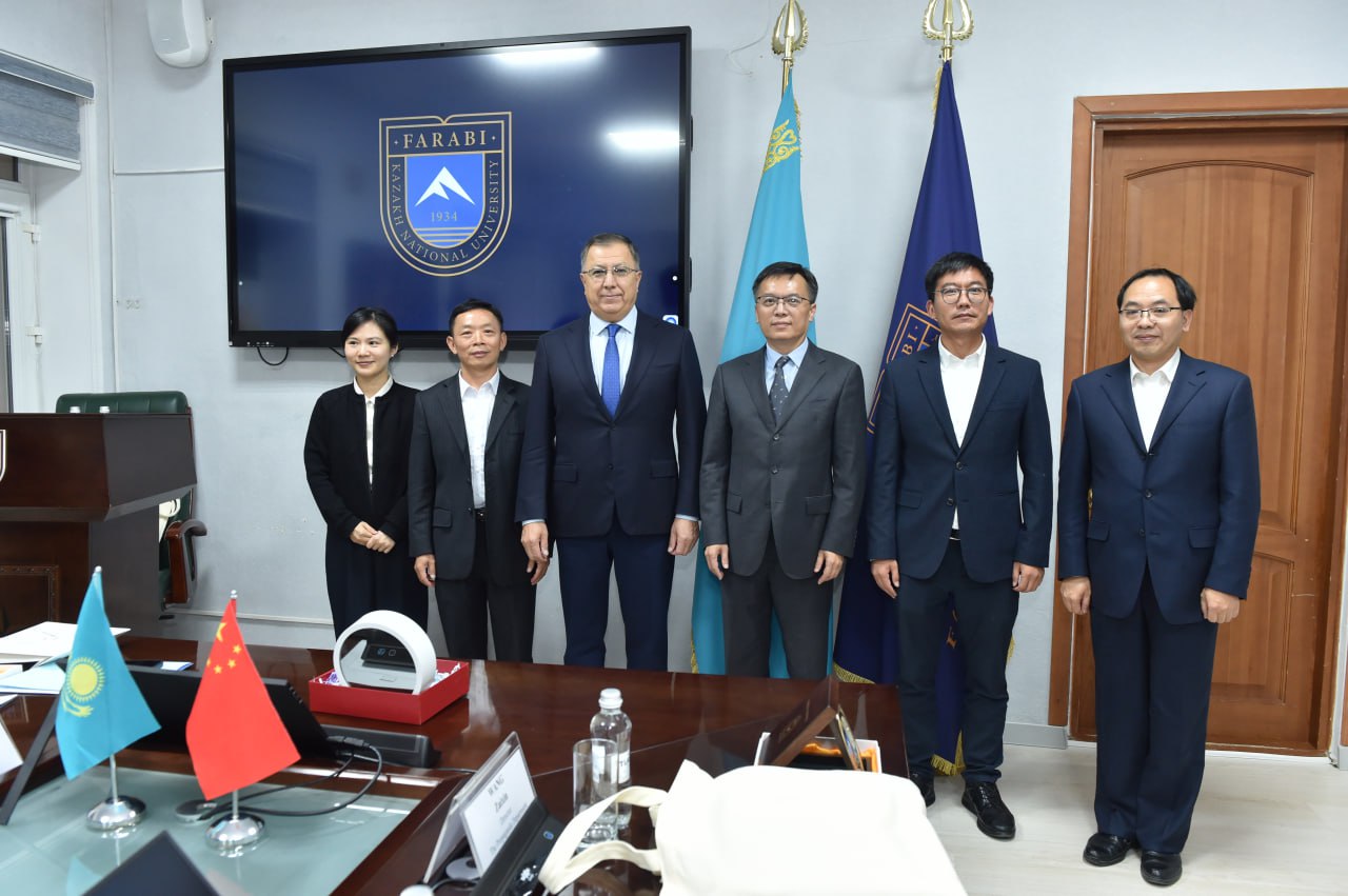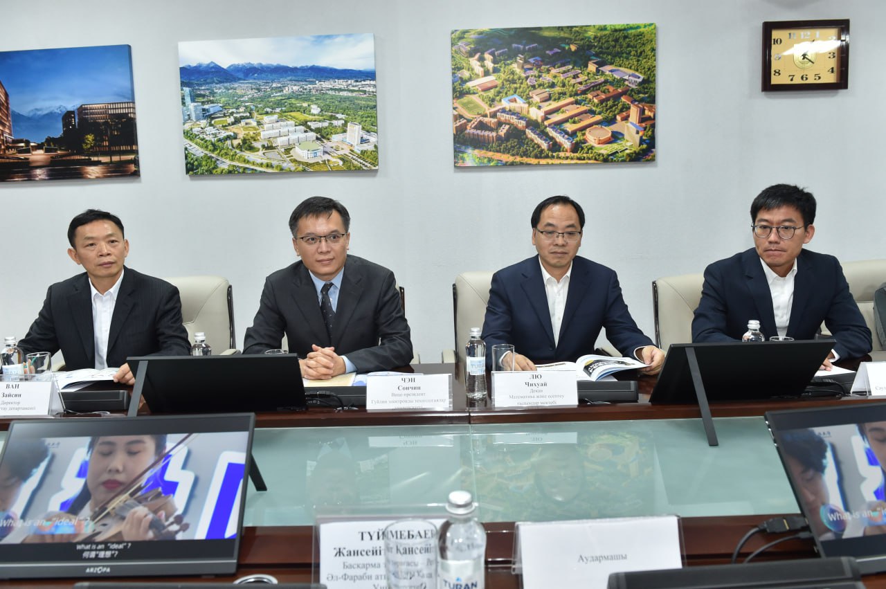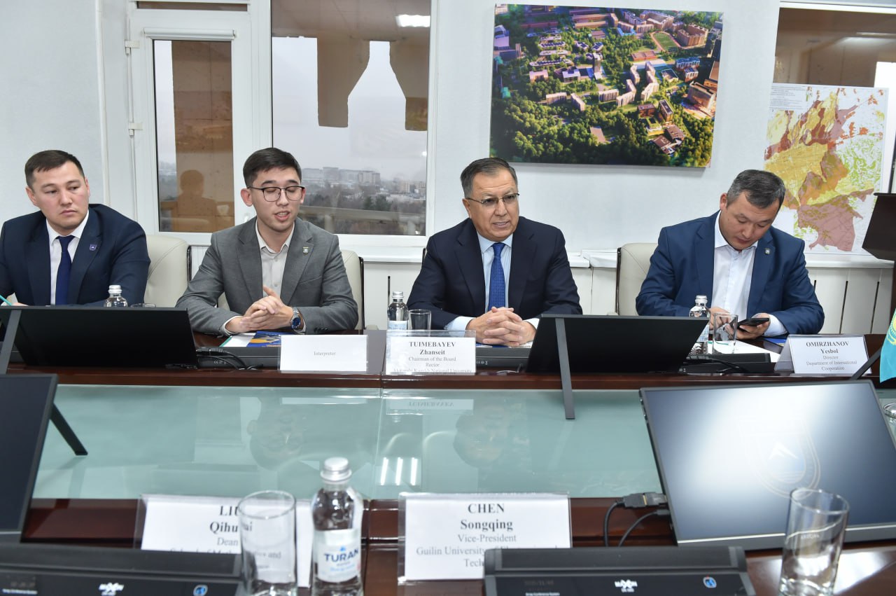 Kazakh National University named after Al-Farabi hosted a meeting between Chairman of the Board – Rector Zhanseit Tuimebayev and a delegation from the Guilin University of Electronic Technologies (China).
