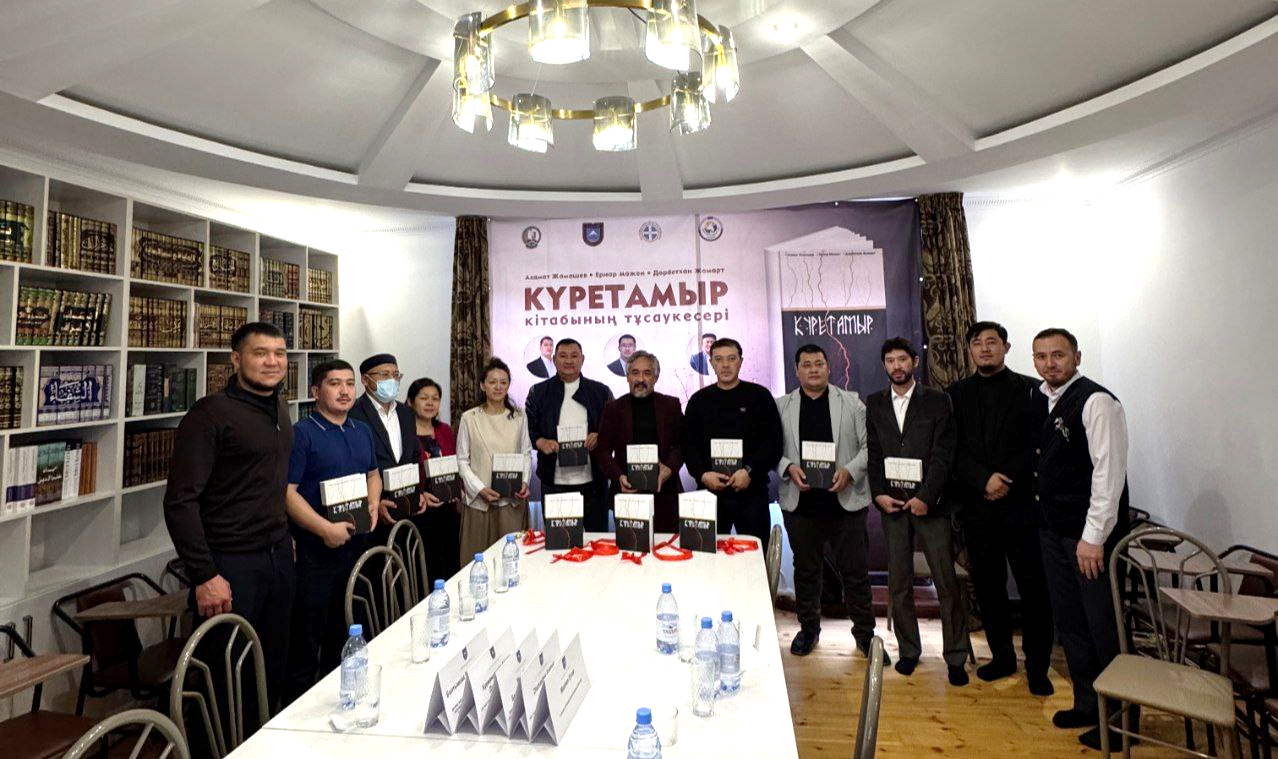 Шараға философия және саясаттану факультетінің деканы, филос.ғ.к., қауымдастырылған профессор Мейрбаев Б.Б., дінтану және мәдениеттану кафедрасының меңгерушісі, филос.ғ.д., профессор Курманалиева А.Д., сондай-ақ кафедра меңгерушісінің ғылыми-инновациялық жұмыс және халықаралық байланыстар жөніндегі орынбасары, филол.ғ.к., қауымдастырылған профессор Балтымова М.Р. қатысып, жаңа еңбектің тұсауын кесті.