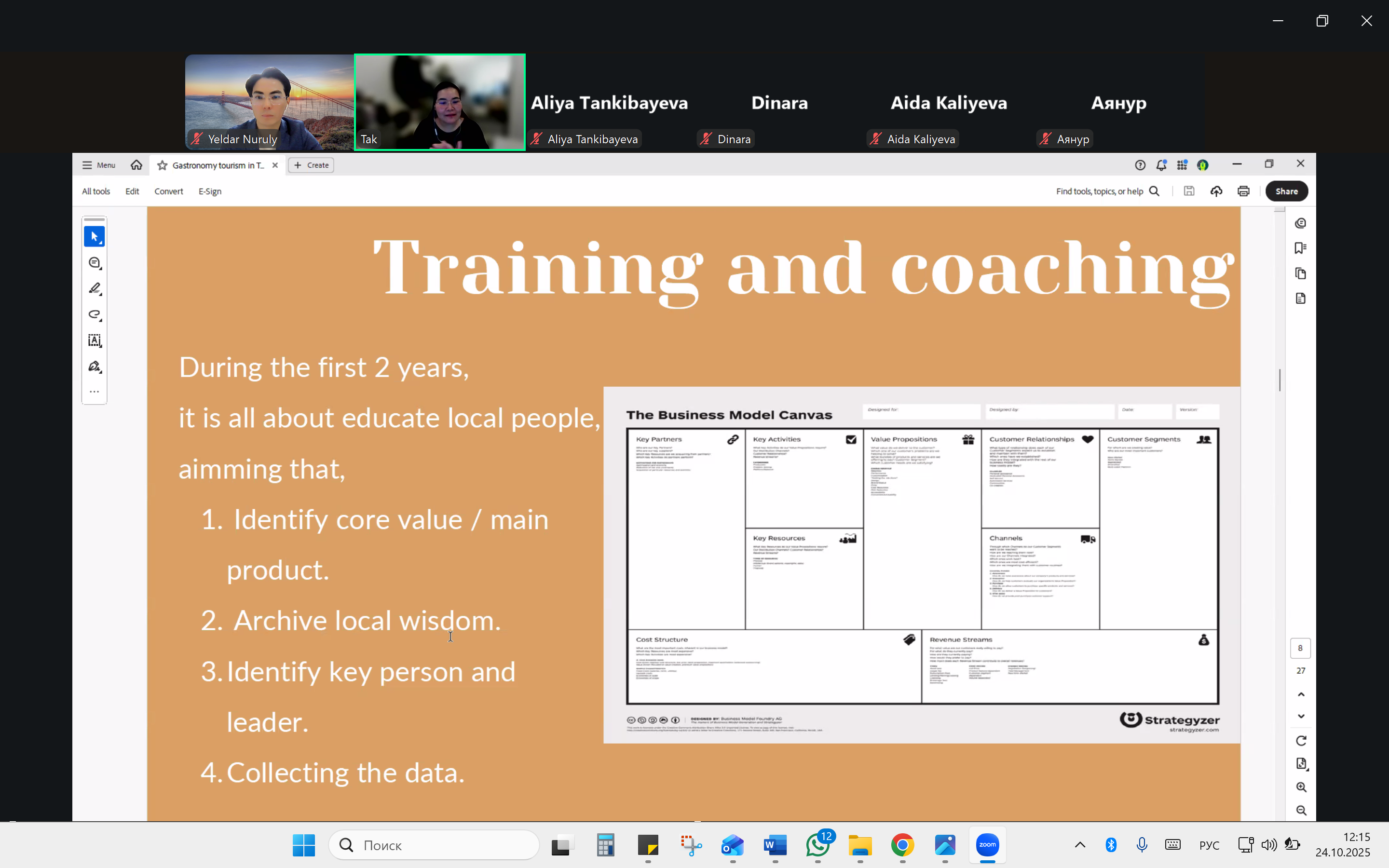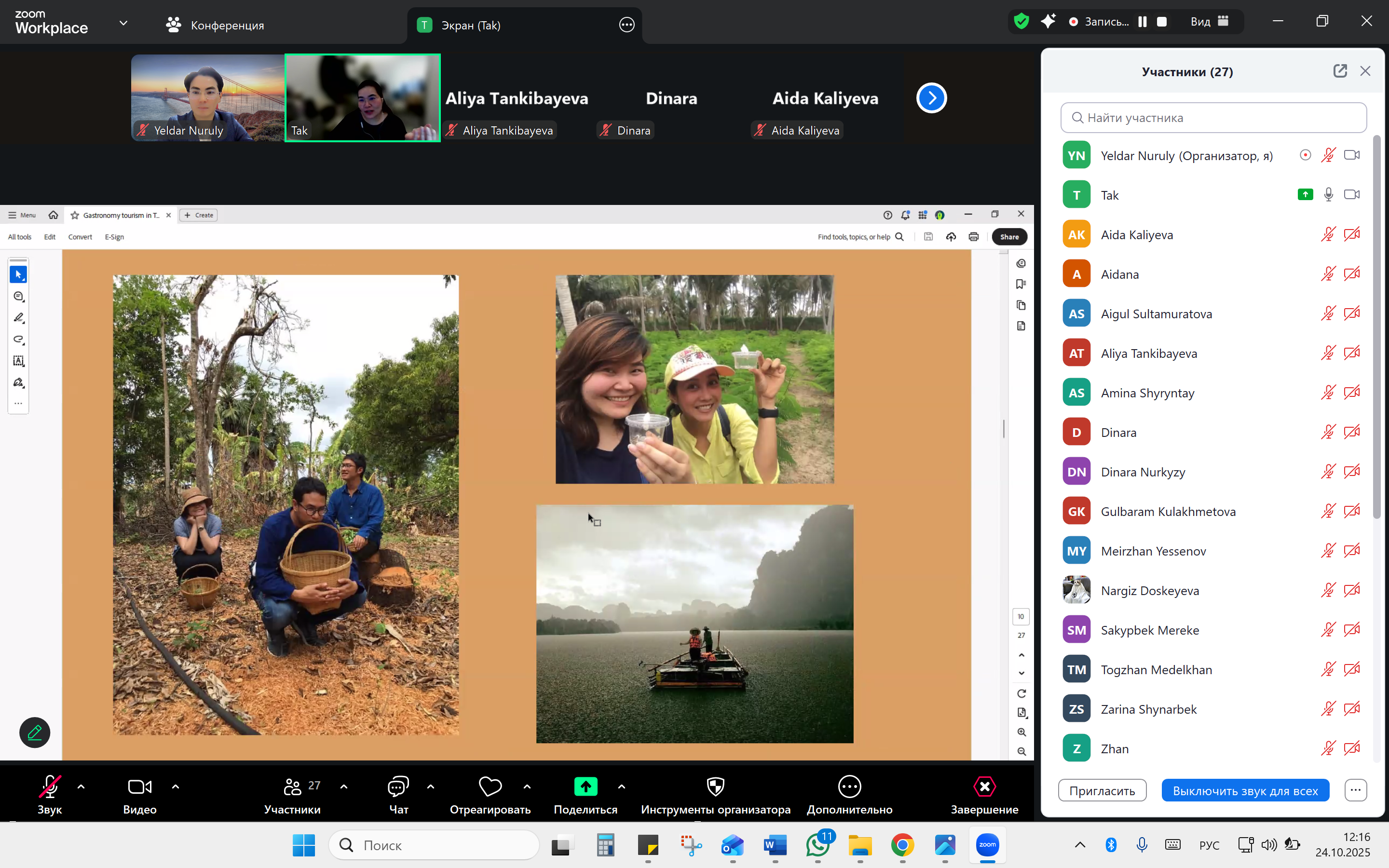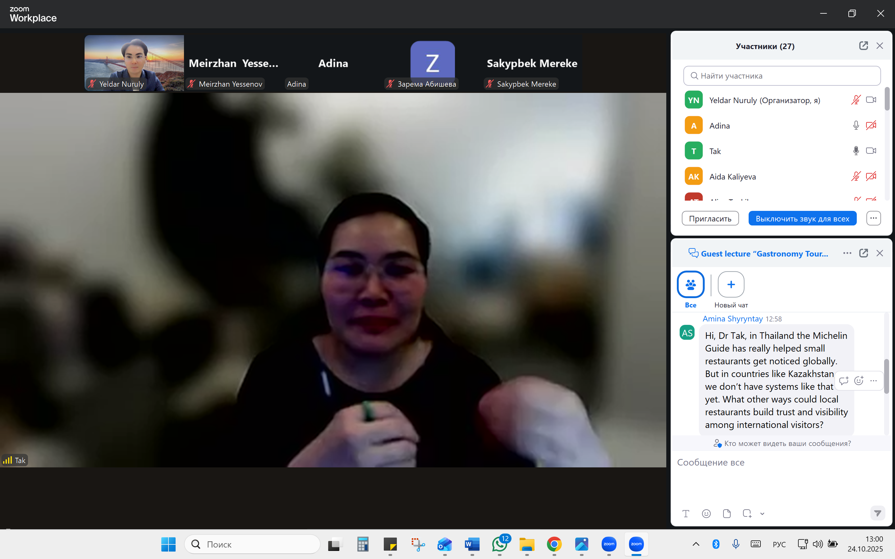 Дәрісте сондай-ақ Таиландтағы гастрономиялық туризмнің табысты мысалдары – жергілікті базарлар мен көше тағамдарынан бастап, Michelin жұлдызды мейрамханаларға дейінгі үлгілер – талқыланды. Бұл мысалдар гастрономияның мәдени шынайылық, кәсіпкерлік және тұрақтылық ұстанымдарының үйлесуі арқылы дестинациялардың ұзақмерзімді бәсекеге қабілеттілігін арттыра алатынын көрсетті.