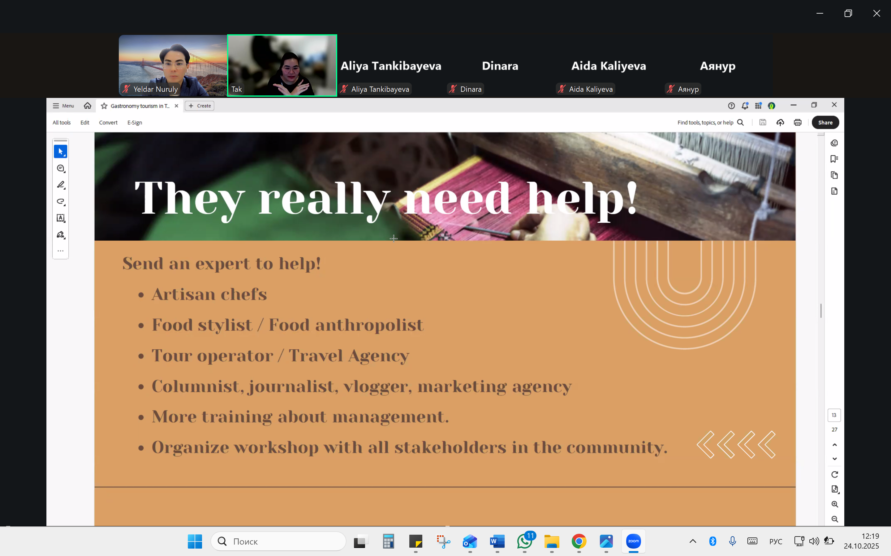 Бұл қорытынды дәріс PolyU–KazNU Guest Lecture Series жобасын шабыттандырарлық нүктемен түйіндеп, гастрономияның мәдени құндылықтар мен тұрақты даму арасындағы көпірге айнала алатынын көрсетті. Дәрісте талқыланған идеялар БҰҰ-ның Тұрақты даму мақсаттарымен тығыз байланысты: ТДМ 8 (Лайықты еңбек және экономикалық өсу), ТДМ 11 (Тұрақты қалалар мен елді мекендер) және ТДМ 12 (Жауапты тұтыну мен өндіріс).