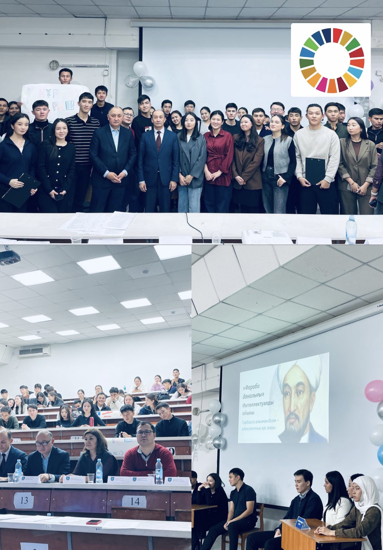 06 қараша 2025 жылы сағат 18:00-де әл-Фараби атындағы Қазақ ұлттық университетінің Экономика және бизнес жоғары мектебінің 5-дәріс залында Экономика кафедрасының ұйымдастыруымен «Тұрақты даму мақсаттары» аясында ұлы ойшыл, адамзат өркениетінің ұлы тұлғасы, «Екінші ұстаз» атанған Әбу Насыр әл-Фарабидің туғанына 1155 жыл толуына орай «Әл-Фараби апталығы» аясында «Фараби даналығы» атты интеллектуалды ойын өткізілді.