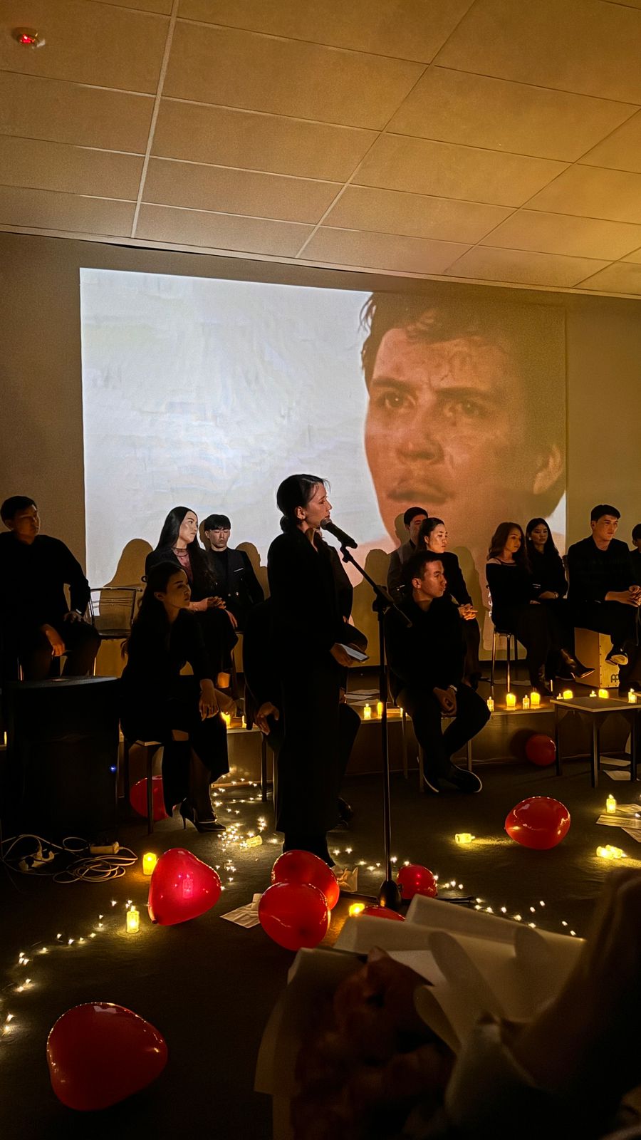 Кеш барысында жас ақындар жүрекжарды жырларын оқып, жас өнерпаздар әсерлі әндерін орындады. Қатысушылар поэзия мен әуеннің үйлесімін сезініп, ерекше шабытқа бөленді. Кештің сценарийін жазған – Орынбасар Айсұлу, режиссері – Балгинбаева Перизат (4-курс студенттері). Музыкалық сүйемелдеуді қамтамасыз еткен – Кулахмет Елсияр, өлең оқыған – Болатбек Нұрсила (1-курс студенттері және т.б. белсенді студенттер қатыст. Шара көрермендердің ыстық ықыласына бөленіп, студенттердің шығармашылық бастамаларын қолдауға бағытталған маңызды мәдени оқиға болды.