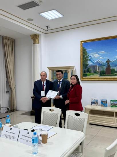 Section 4 - "Environmental Education and Awareness as a Tool for Biodiversity Conservation and Ecosystem Services" was moderated by M.G. Mustafaev, full member of the Russian Academy of Natural Sciences, honorary doctor of BGSHA, representative of the Institute of Soil Science and Agrochemistry of the Ministry of Science and Education of the Republic of Azerbaijan, and G.A. Mukhanova, acting professor of the UNESCO Department of Sustainable Development. The session was held in a warm and productive atmosphere that facilitated active exchange of scientific ideas and experiences. Scientists from Kazakhstan, Kyrgyzstan, Azerbaijan, and Germany participated, presenting reports on environmental education, sustainable ecosystem management, and innovative approaches to biodiversity conservation. Special attention was given to international cooperation and the integration of scientific research into environmental education practice, confirming the importance of environmental education as a key factor for sustainable development.
