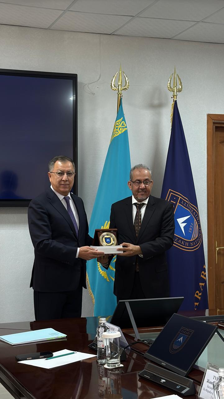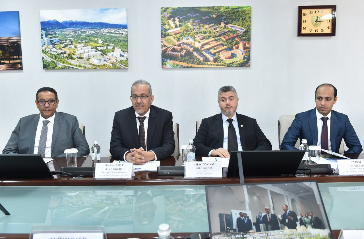 Қонақтар әл-Фараби атындағы Қазақ ұлттық университетінің Басқарма төрағасы – Ректоры Ж.Қ.Түймебаевтың қабылдауында болып, ортақ мәселелерді талқылады. Салтанатты жиынды факультет деканы, профессор Бекжан Мейірбаев жүргізді, келген қонақтарды таныстырып, ҚазҰУ мен ИСЕСКО арасындағы байланыстың тарихына қысқаша шолу жасап өтті. Сұлтан және Абдулазиз Әл Сауд қайырымдылық қорының операциялар бөлімінің бастығы доктор Сүлейман әл-Омари мен бас директорының орынбасары доктор Абдулазиз әл-Мақуши Сұлтан және Абдулазиз Әл Сауд қайырымдылық қорының атқарған жұмыстарды атап өтіп, болашаққа деген жоспарларды белгіледі.