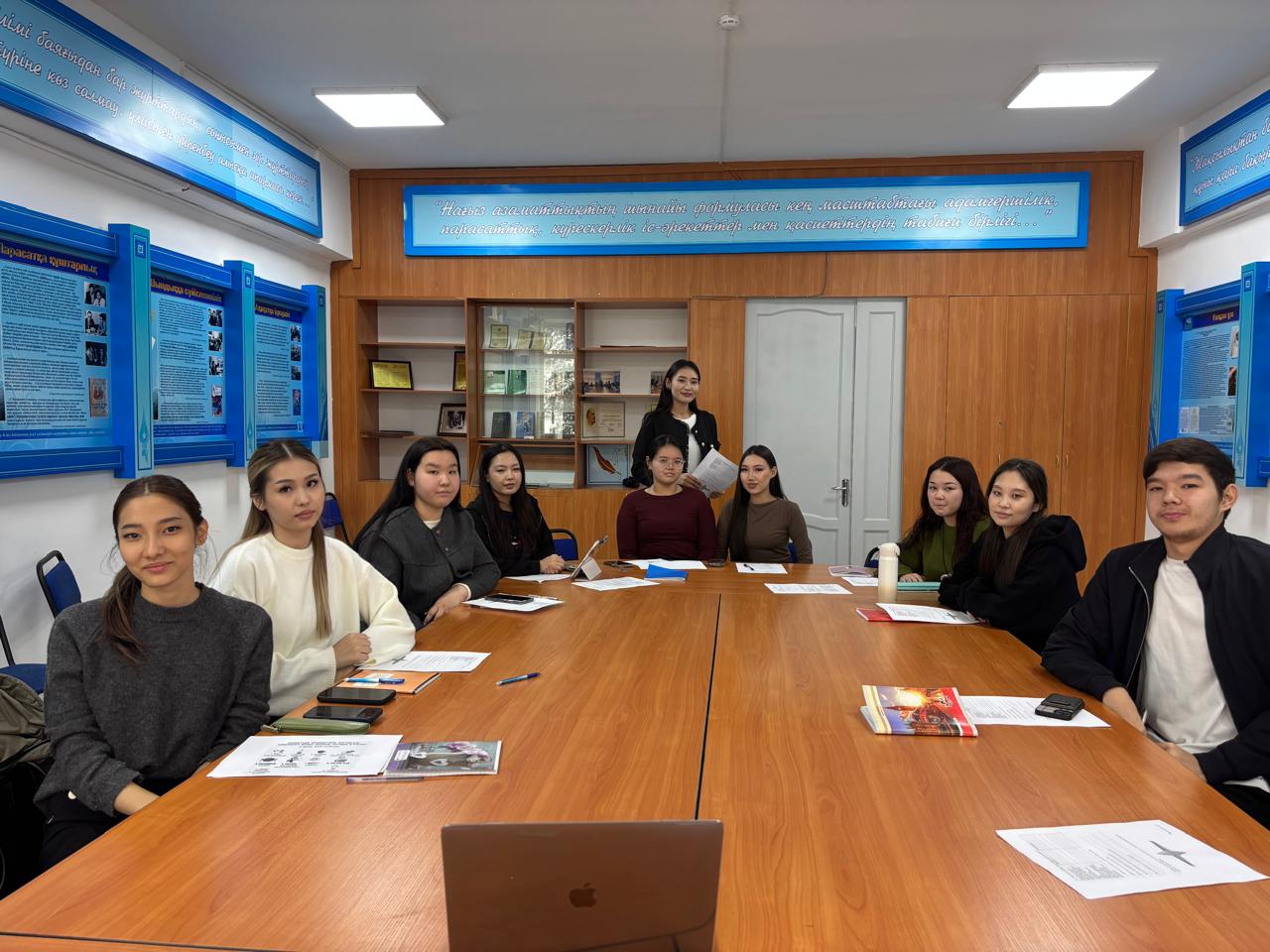 Кездесу барысында студенттерге тақырып бойынша презентация көрсетілді. Кейін қатысушылар интерактивті тапсырмаларды орындады: