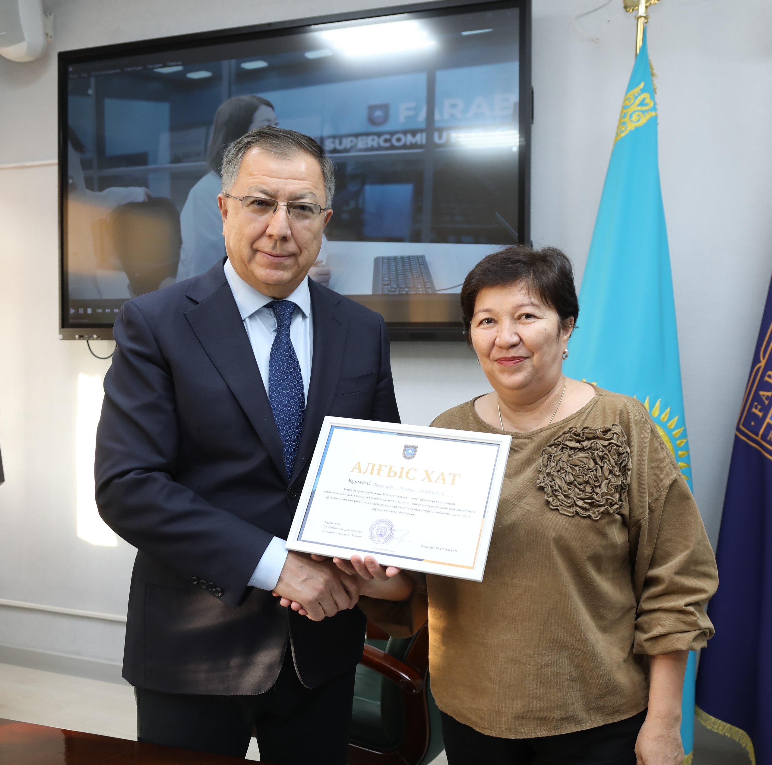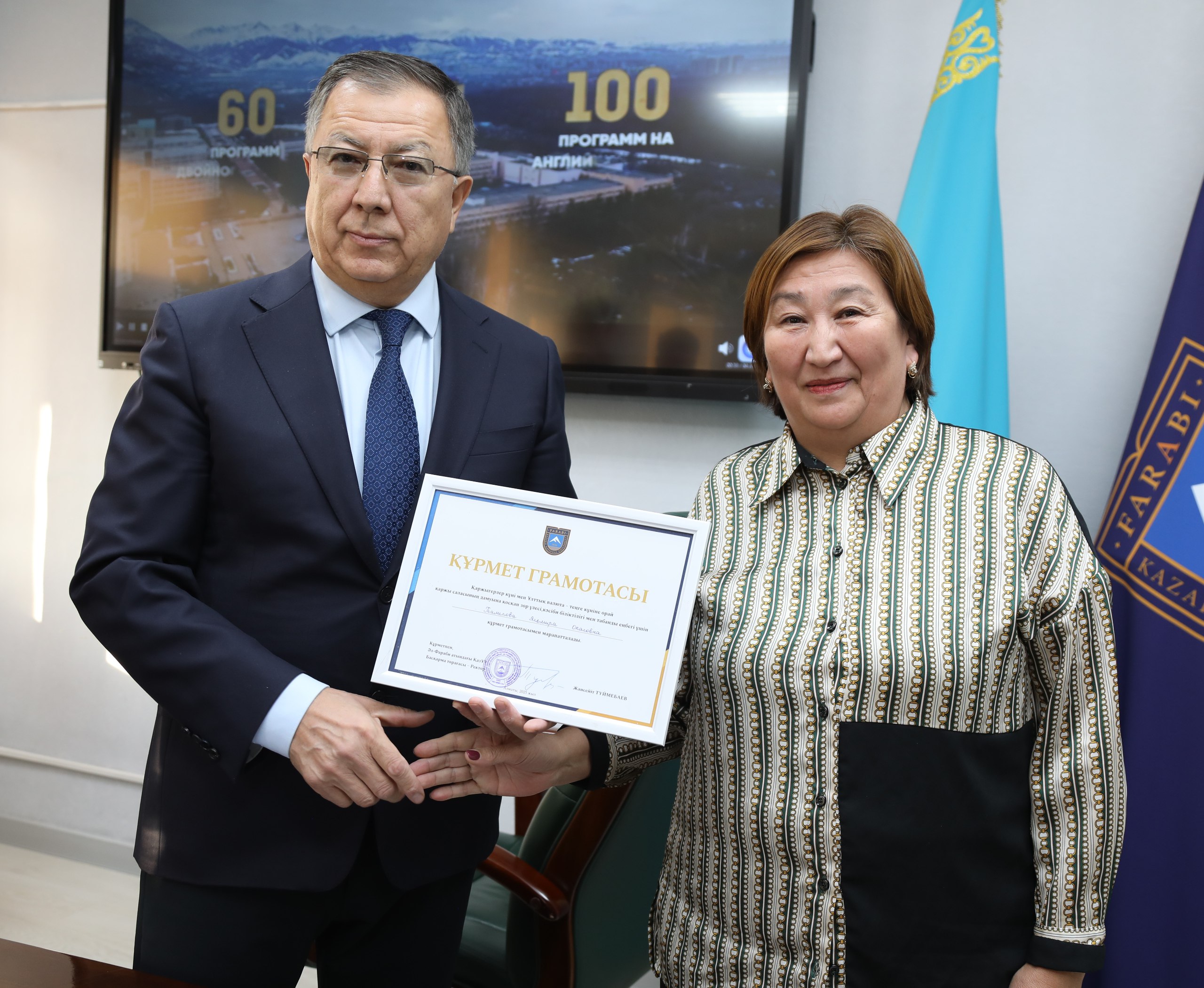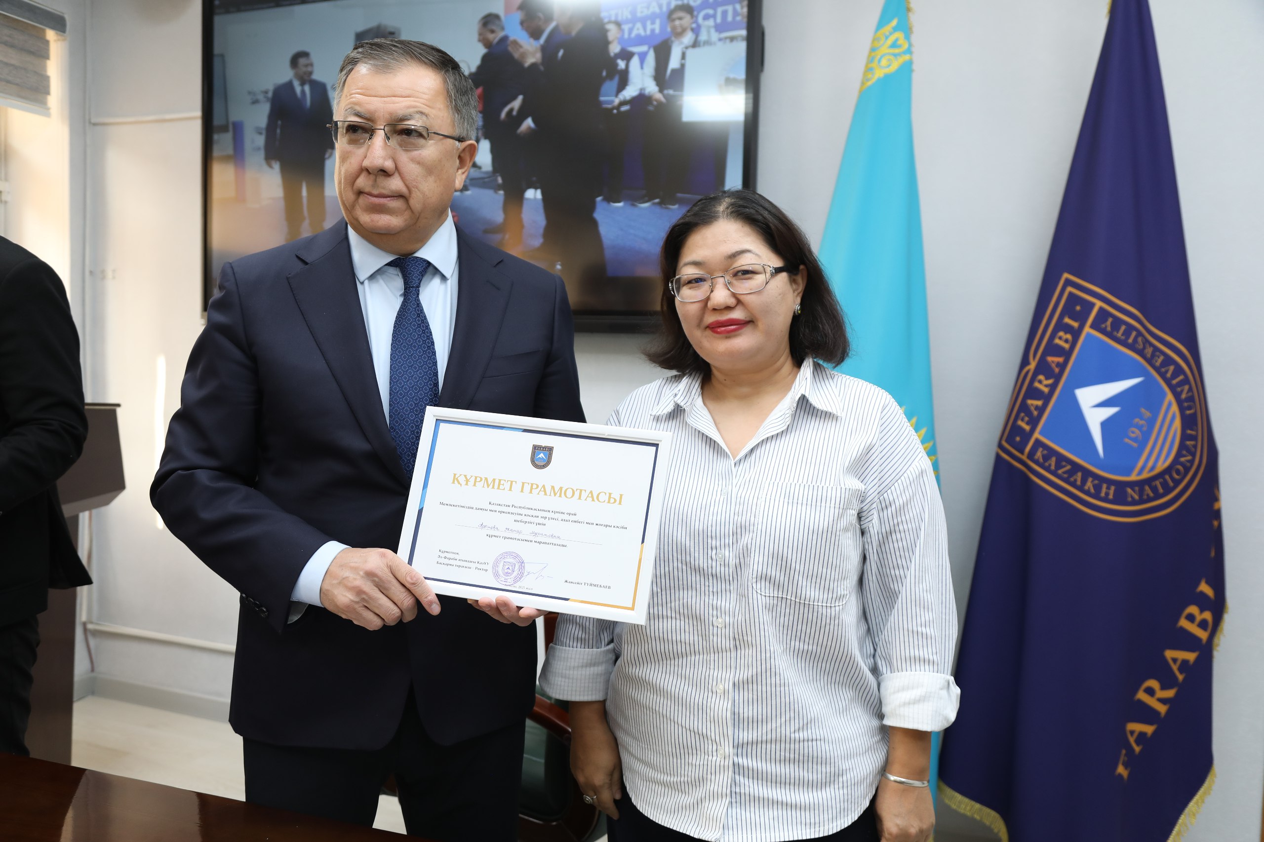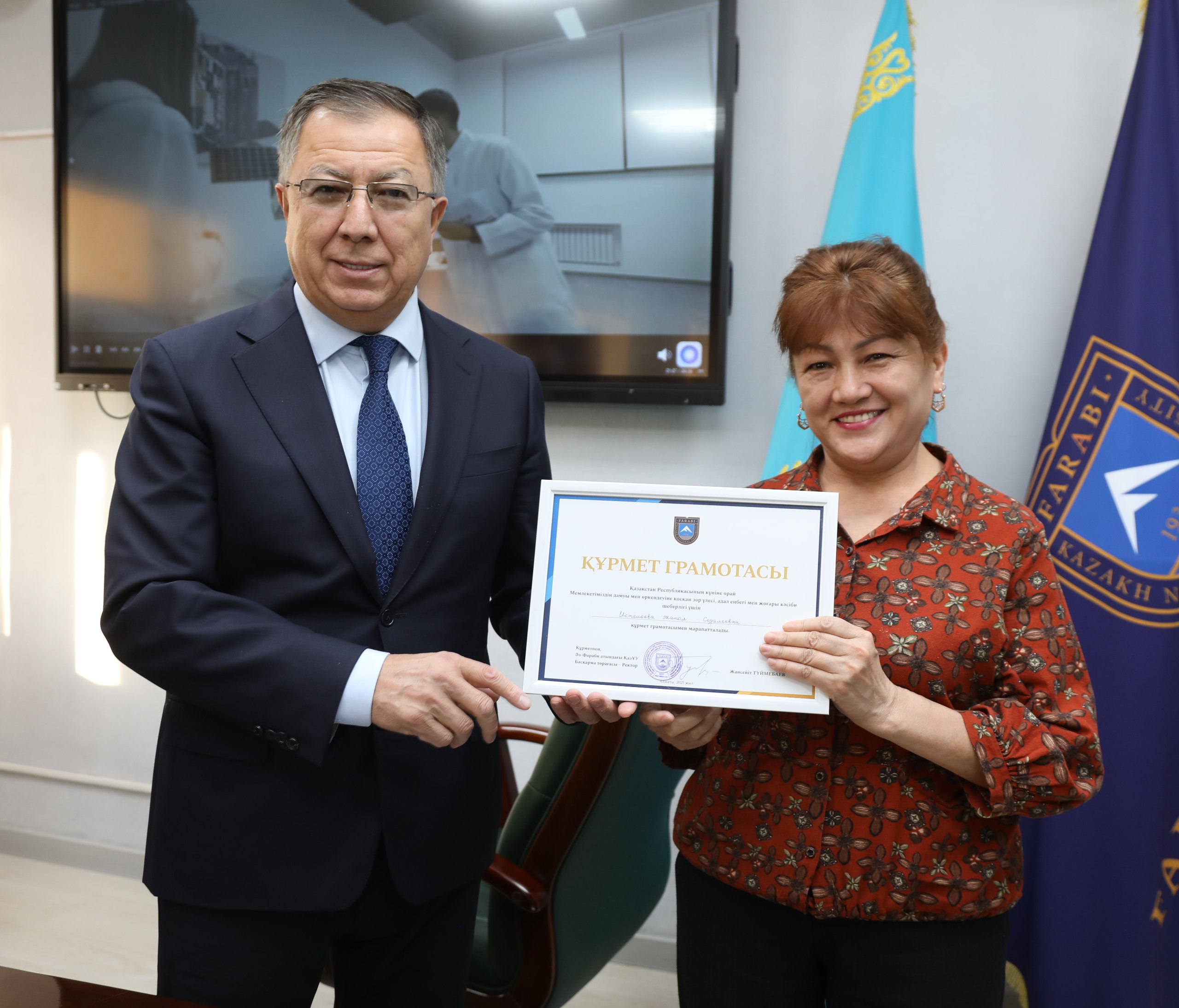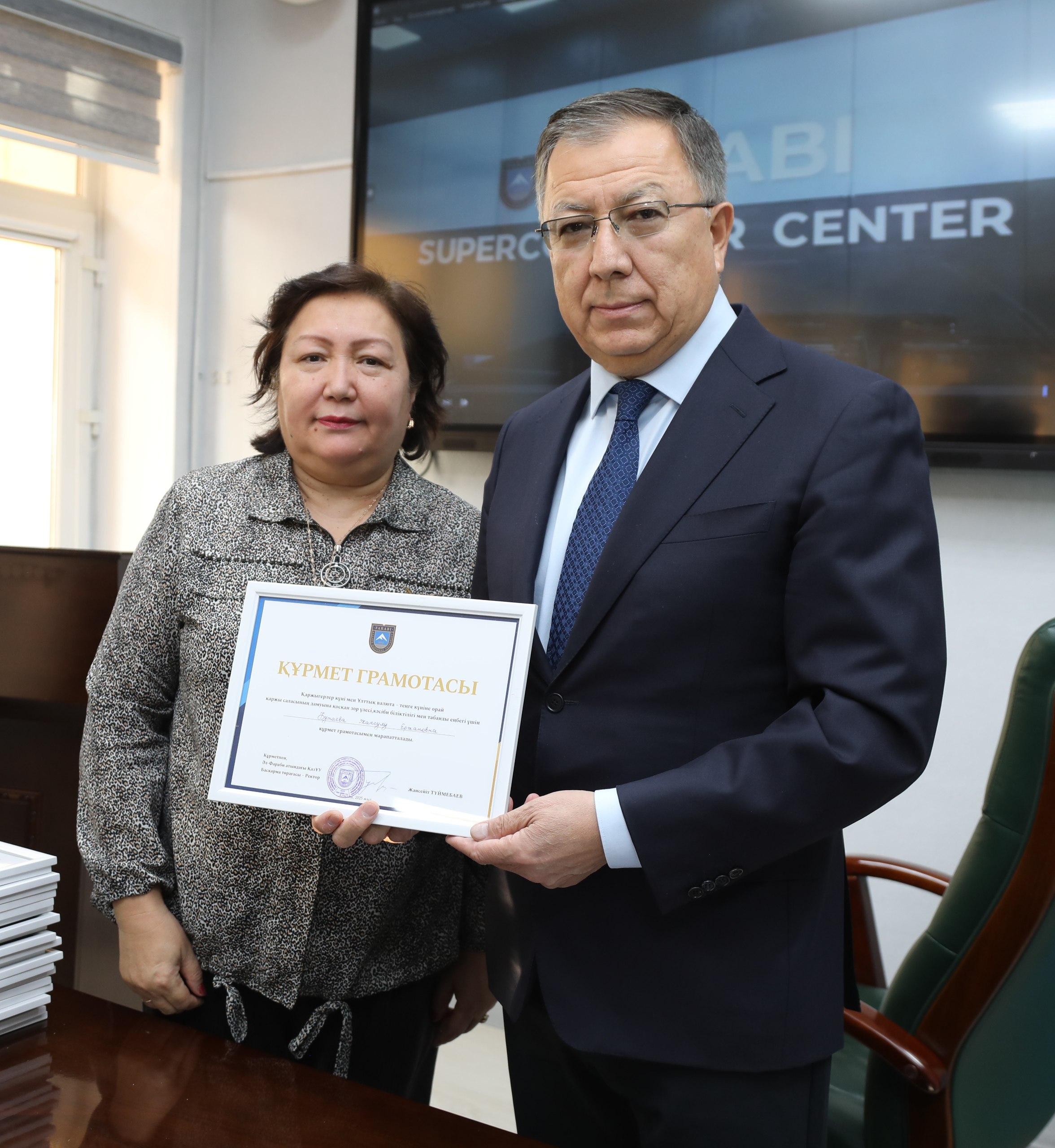В завершение встречи ректор наградил ряд сотрудников медалью «Farabi», почетными грамотами и благодарственными письмами за добросовестный труд и высокий вклад в развитие университета.