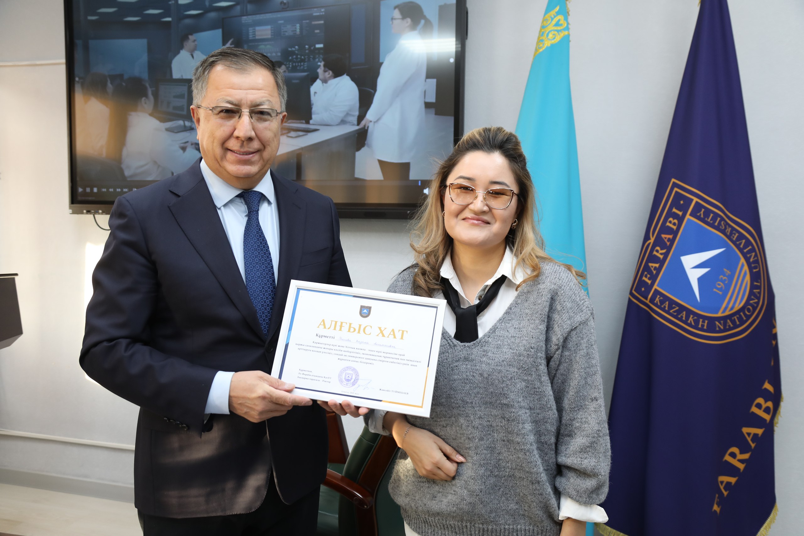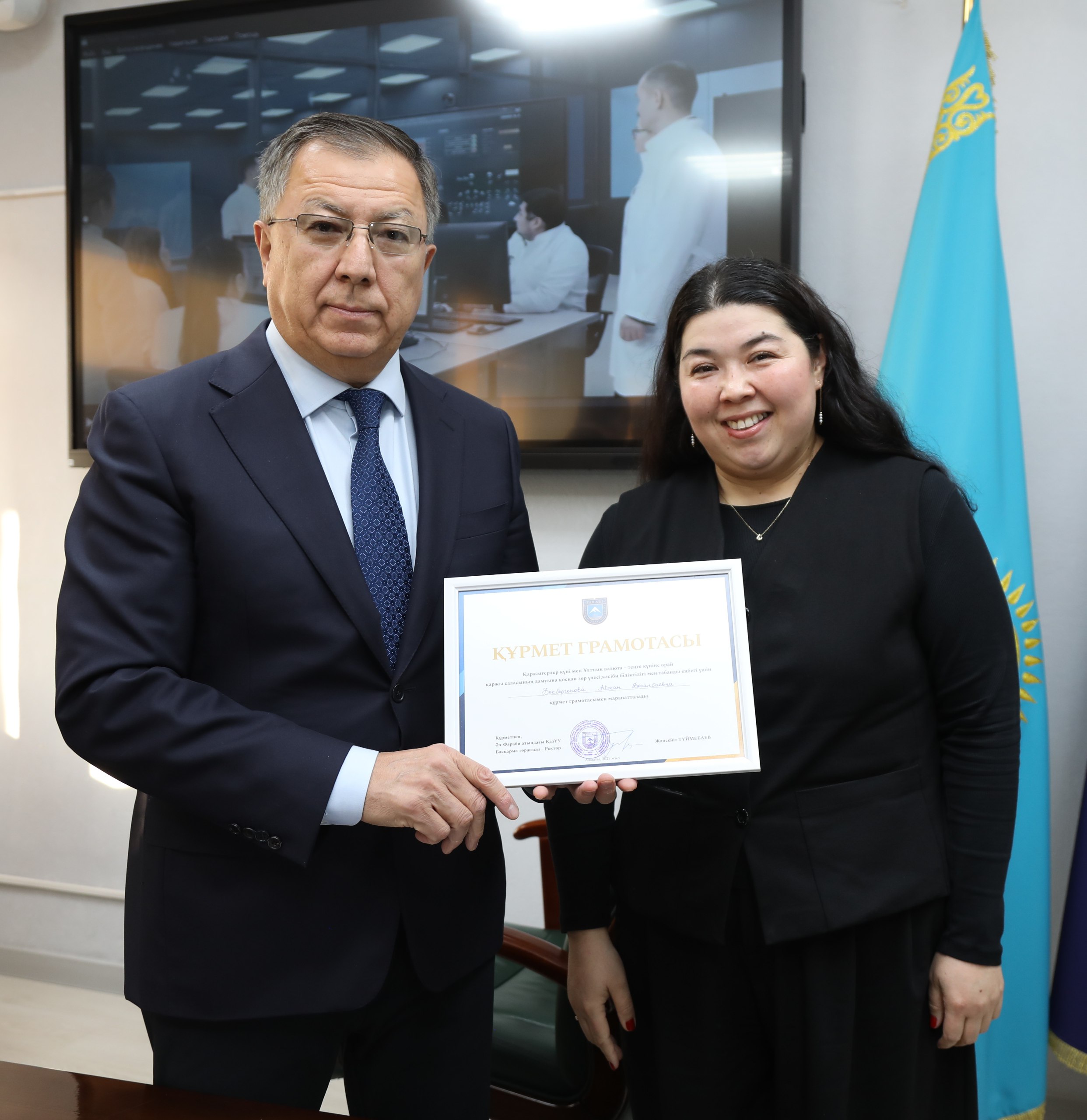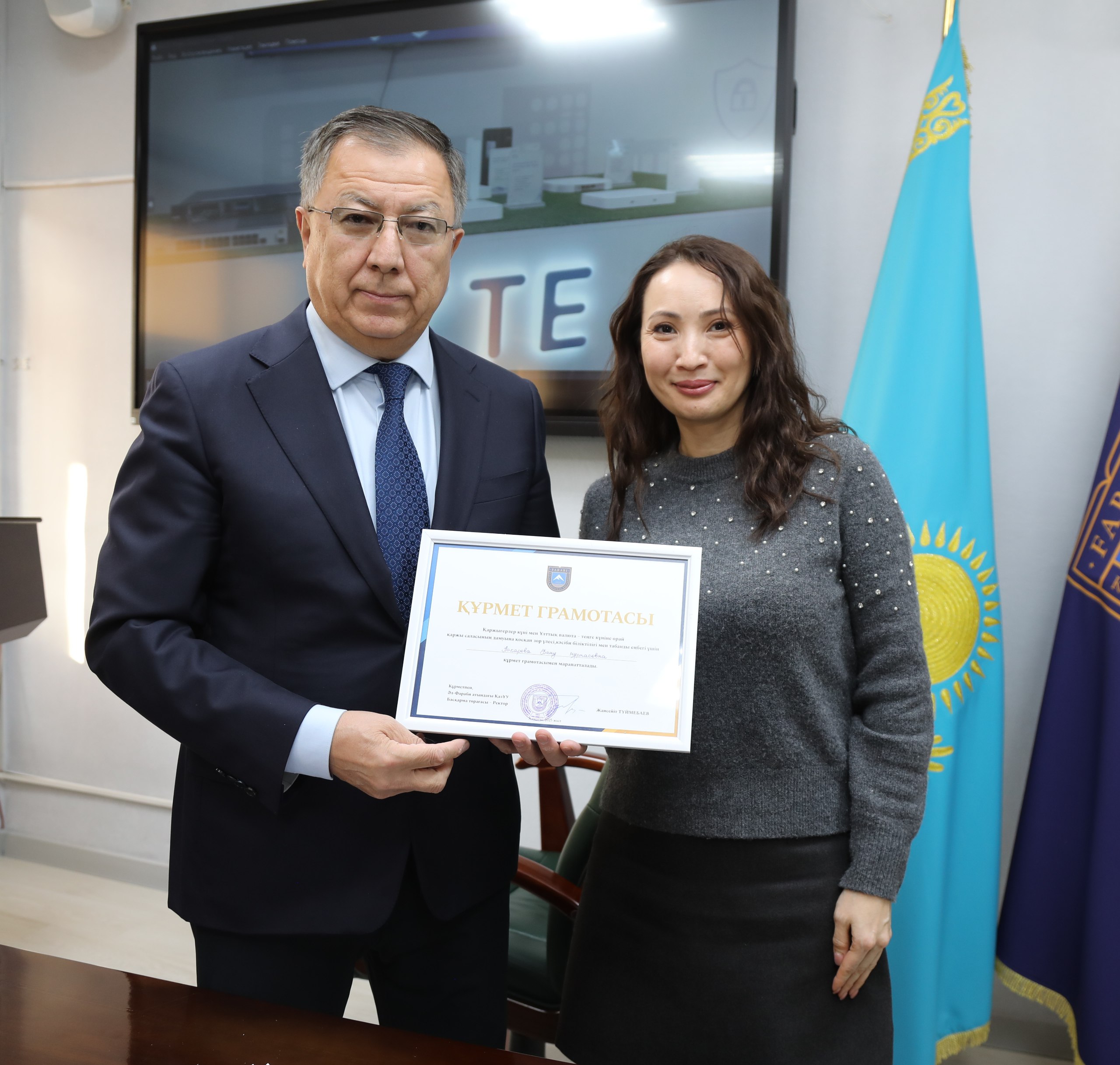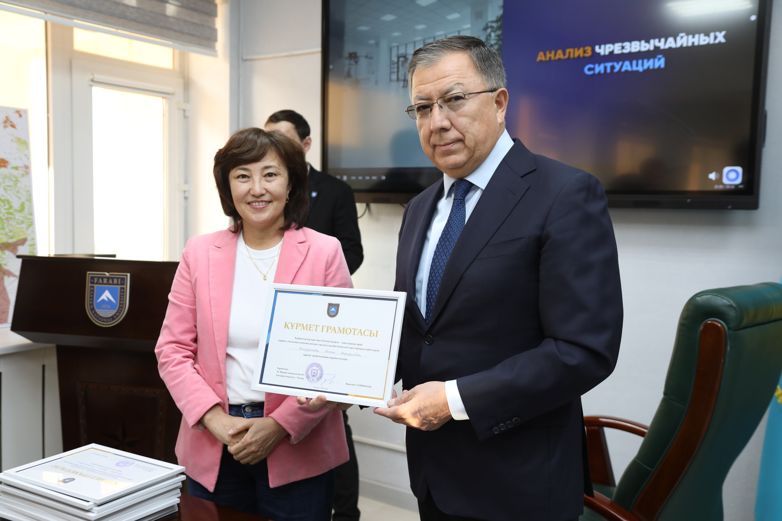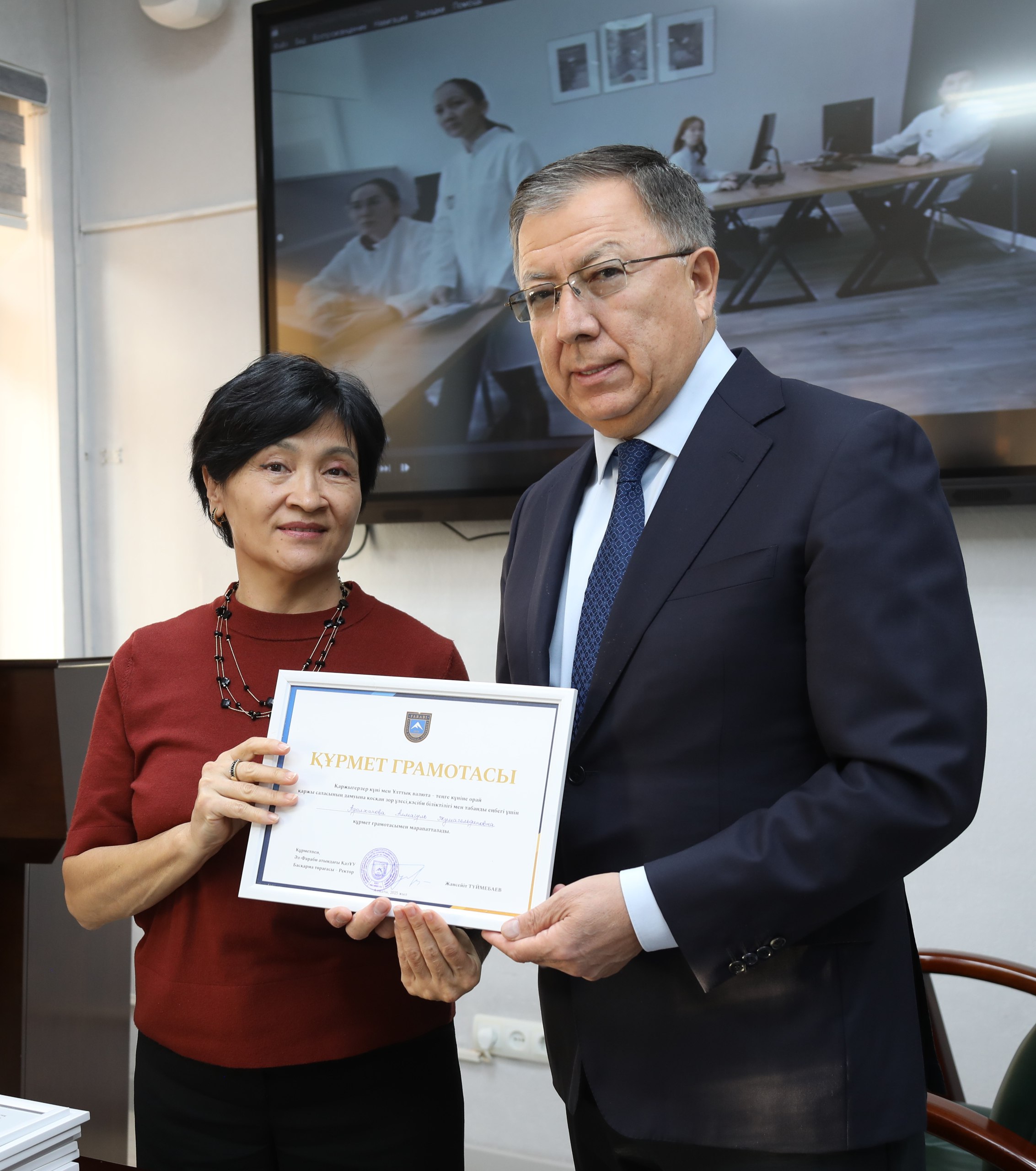 В завершение встречи ректор наградил ряд сотрудников медалью «Farabi», почетными грамотами и благодарственными письмами за добросовестный труд и высокий вклад в развитие университета.