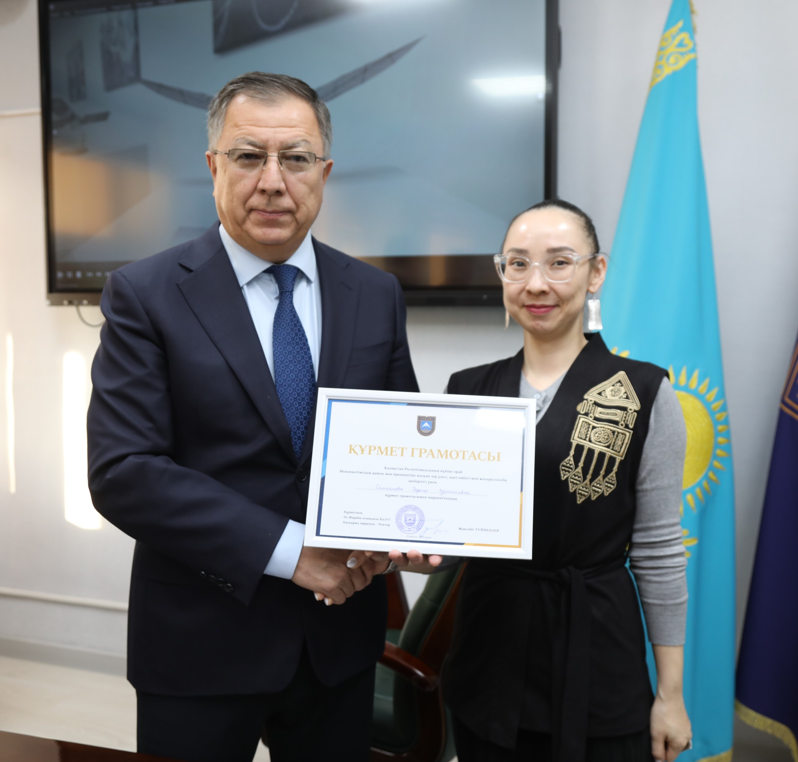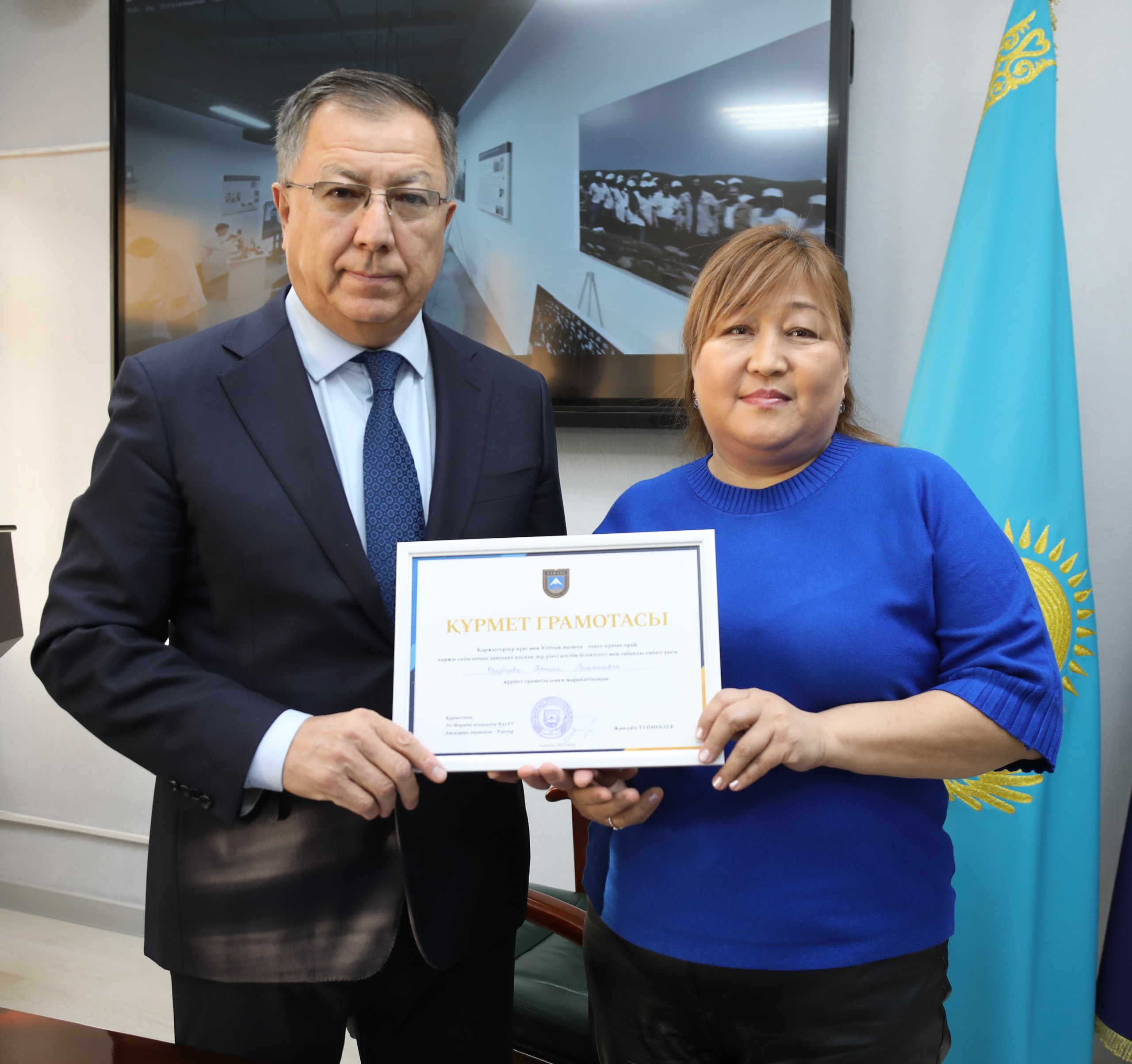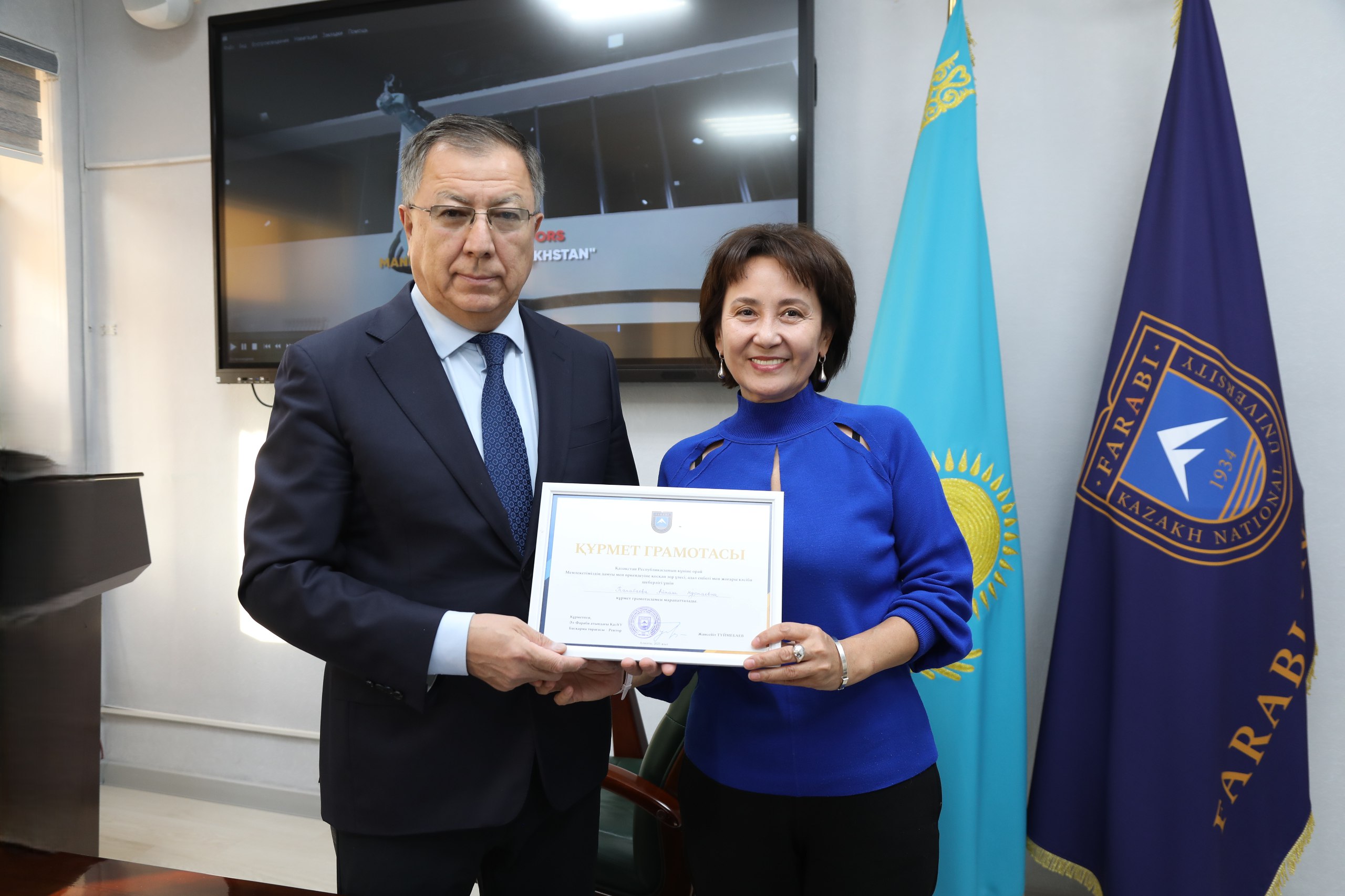 «Вы вносите весомый вклад в стратегическое развитие КазНУ и укрепление его финансовой стабильности. Ваш профессионализм и многолетний опыт играют важную роль в успешной работе нашего университета», – отметил ректор.