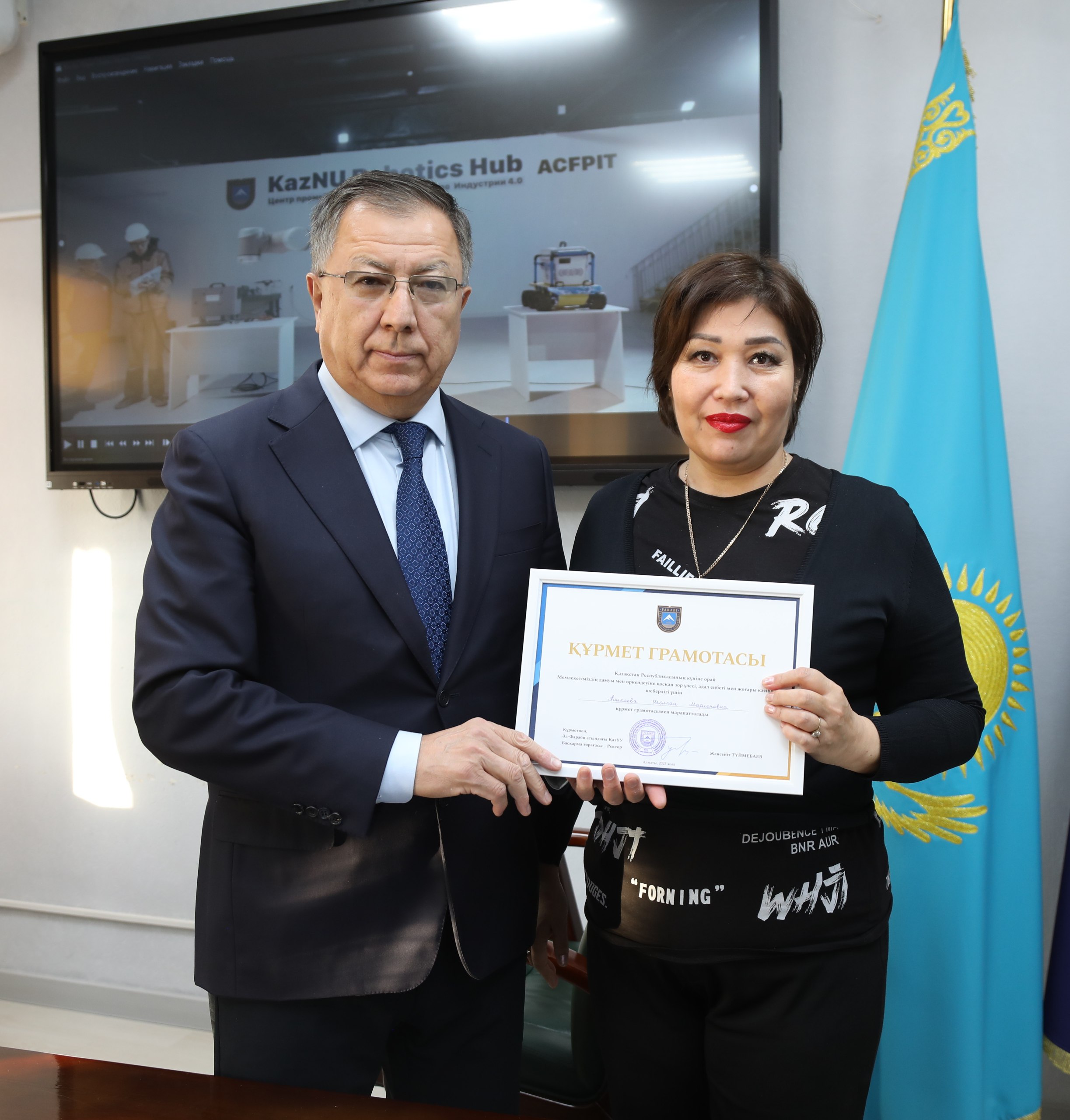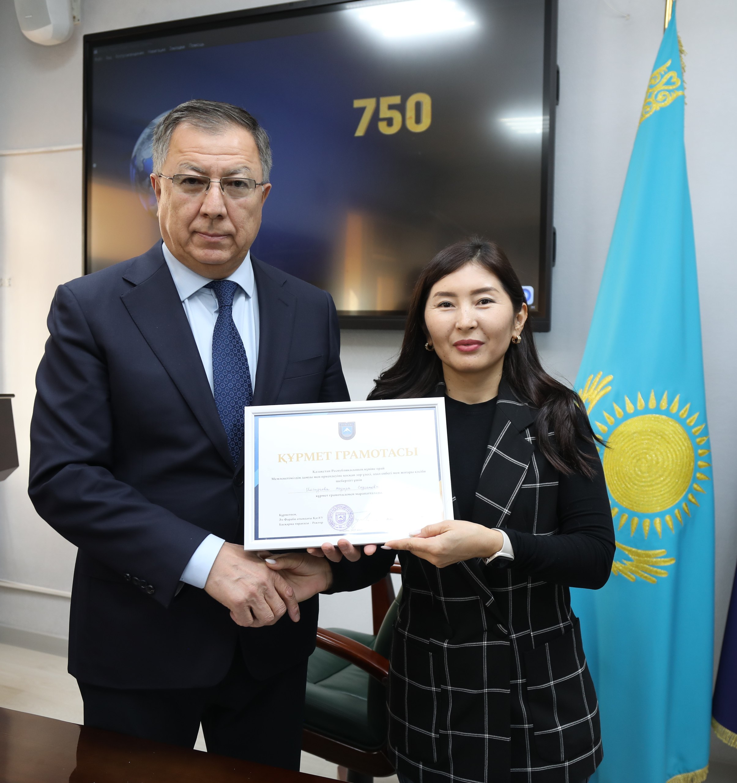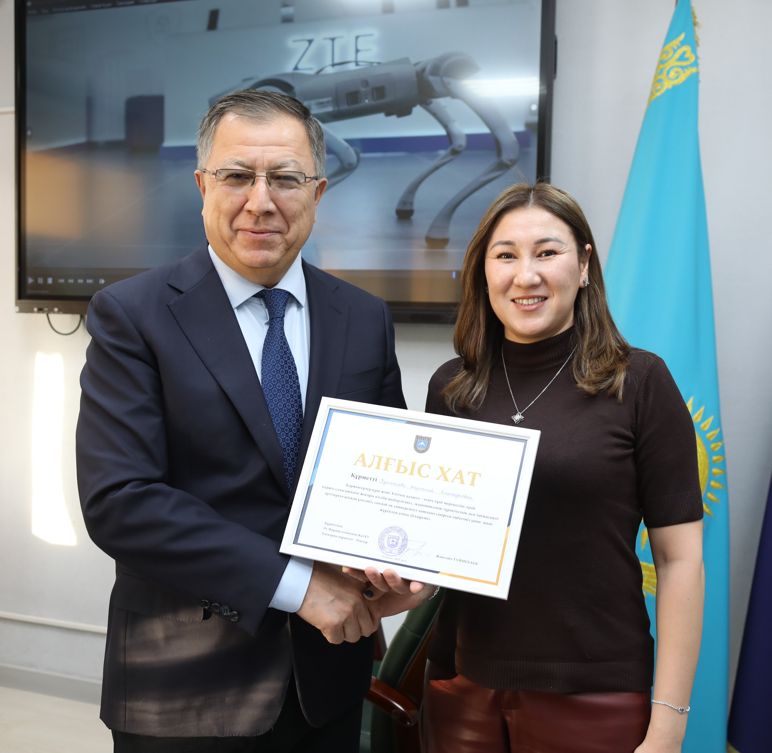 «Вы вносите весомый вклад в стратегическое развитие КазНУ и укрепление его финансовой стабильности. Ваш профессионализм и многолетний опыт играют важную роль в успешной работе нашего университета», – отметил ректор.