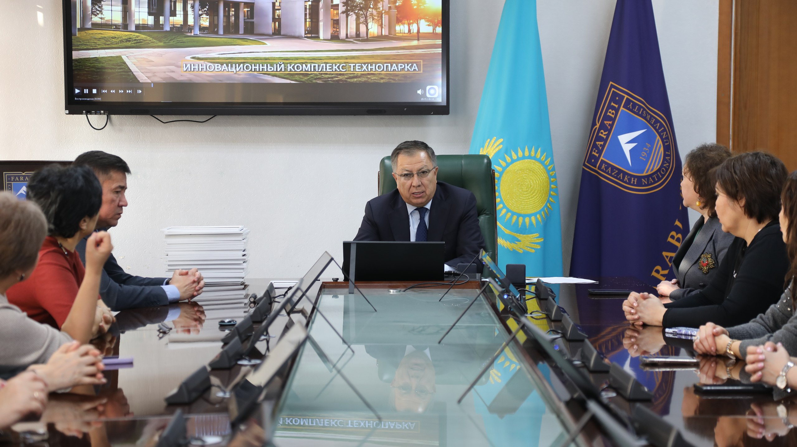 Открывая встречу, руководитель университета поздравил коллектив с профессиональным праздником, выразив благодарность за высокий уровень компетентности, ответственность и преданность делу. Ректор подробно рассказал о достигнутых результатах КазНУ и представил ключевые направления дальнейшего развития вуза.