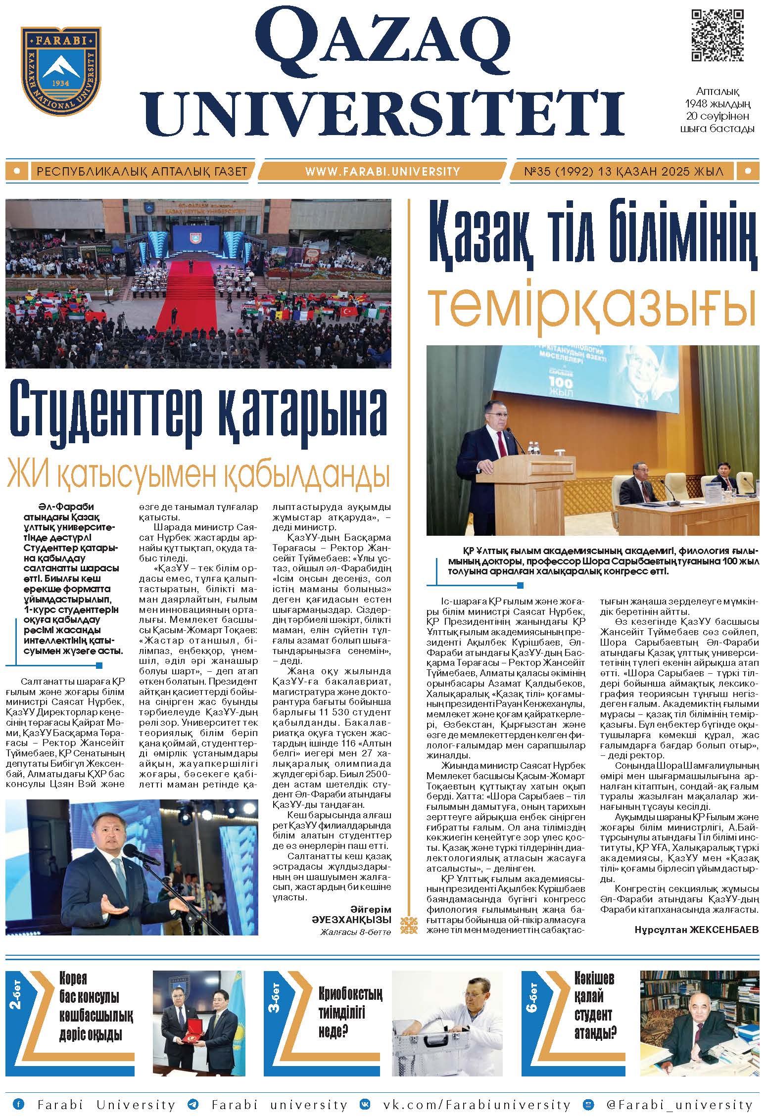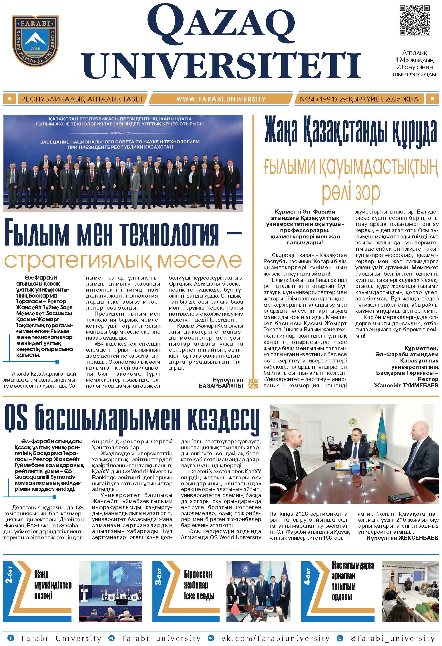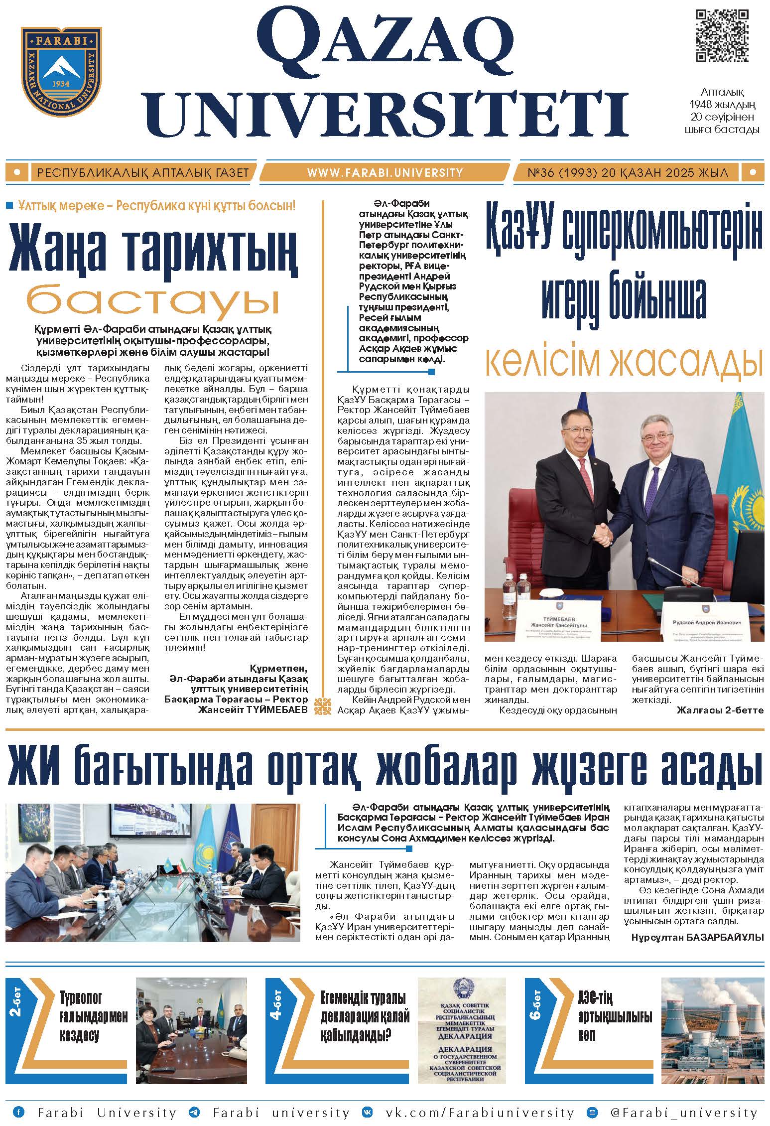Әл-Фараби атындағы ҚазҰУ-дың төл басылымы – «Qazaq universiteti» газетінің тарихы 1948 жылдан басталады. Газеттің негізгі бағыты – еліміздің білім саласындағы, университеттегі басты жаңалықтармен, қоғамдық-саяси, тәлім-тәрбиелік маңызы бар іс-шаралармен, оқу-әдістемелік жұмыстармен білім ордасының қызметкерлерін, ұстаздар мен студенттер қауымын таныстырып отыру. Оқырмандар газет арқылы ғылыми, мәдени жаңалықтармен, факультеттерде өткен іс-шаралармен, жаңа оқулықтармен, оқу-әдістемелік құралдармен, монографиялармен, студенттің мамандық игерудегі табыстарымен таныса алады. Сонымен қатар басылымда университеттегі жазуға бейімі бар студенттердің шығармашылығы насихатталады.