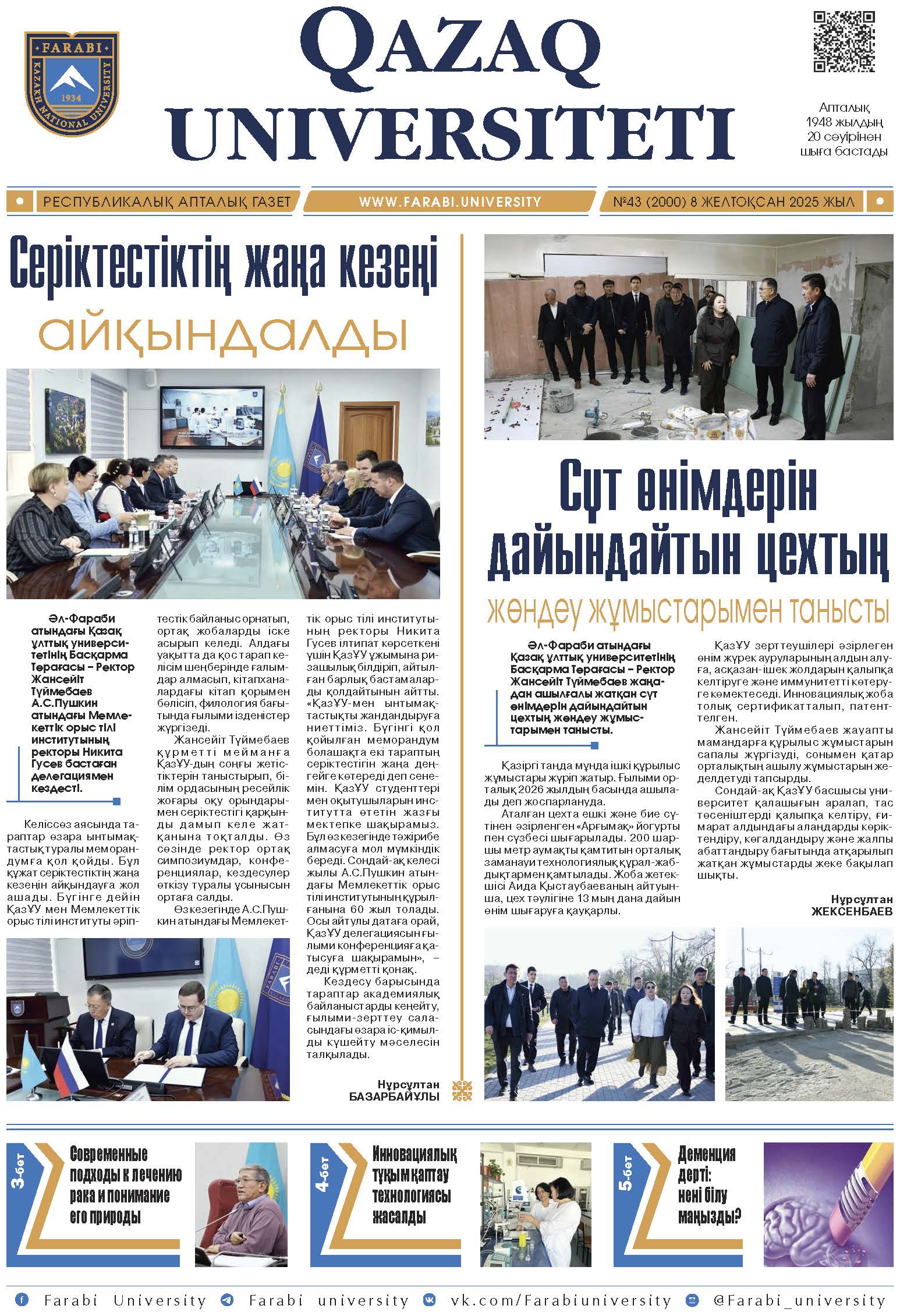 Address of the newspaper "Qazaq universiteti": 71, Al-Farabi Avenue, Almaty, 050040. Rectorate of Al-Farabi KazNU, 3rd floor, offices 305, 307.