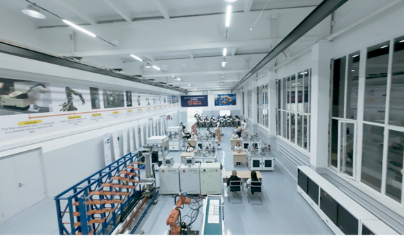 Цифрлық және интеллектуалды шеберхана заманауи өнеркәсіптік роботтармен, оқу кешендерімен және цифрлық зауытпен жабдықталған. Мұнда студенттер мехатроника, машиналық көру, бағдарламалау және интеллектуалды жүйелерді басқаруды үйренеді. Бұл жерде деректерді талдаудан және модельдеуден бастап өнеркәсіп, білім және ғылым салаларына арналған роботтандырылған шешімдерді әзірлеуге жасанды интеллектіні тәжірибе жүзінде меңгеруге жағдай жасалған.